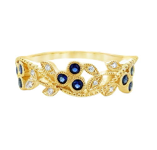 14K YELLOW GOLD SAPPHIRE AND DIAMOND RING #200-00401