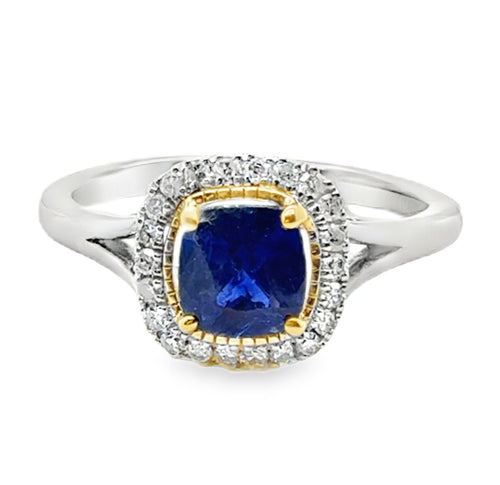 14K WHITE AND YELLOW GOLD SAPPHIRE AND DIAMOND RING #200-00473
