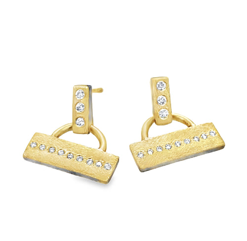 18K YELLOW GOLD AND STERLING SILVER DIAMOND EARRINGS #645-00342