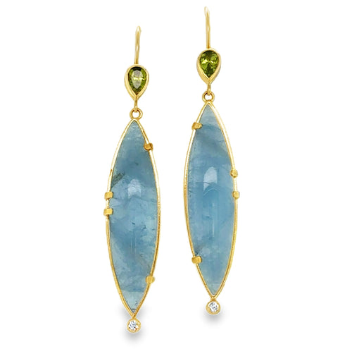 18K YELLOW GOLD AQUAMARINE, PERIDOT AND DIAMOND EARRINGS #210-00437