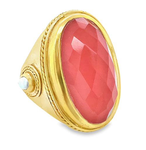 24K GOLD PLATED CORAL AND PEARL RING #800-03855