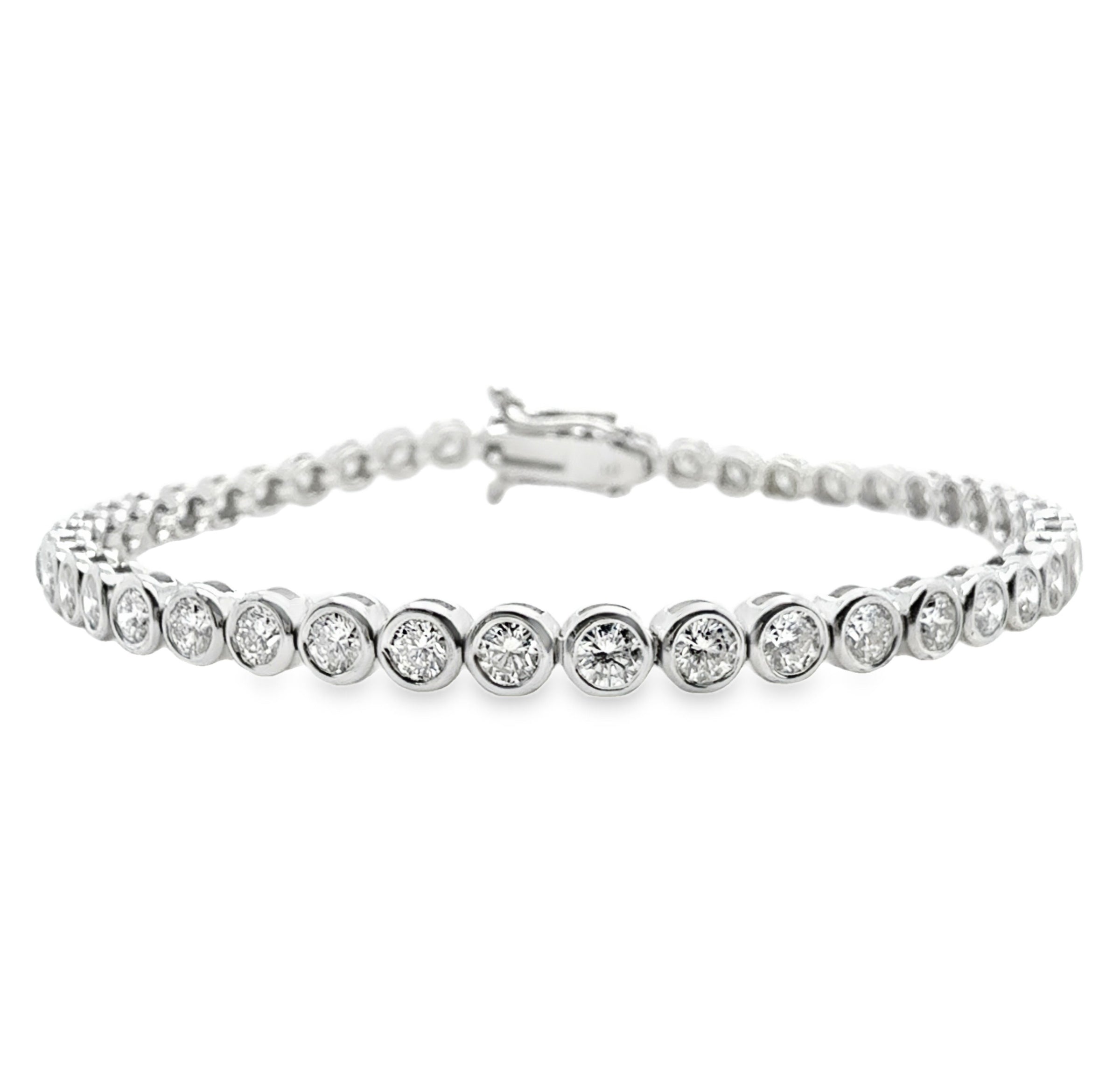14K White Gold Tennis Bracelet with Bezel Set Lab Grown Diamonds, 4.15Cttw F-VS2.