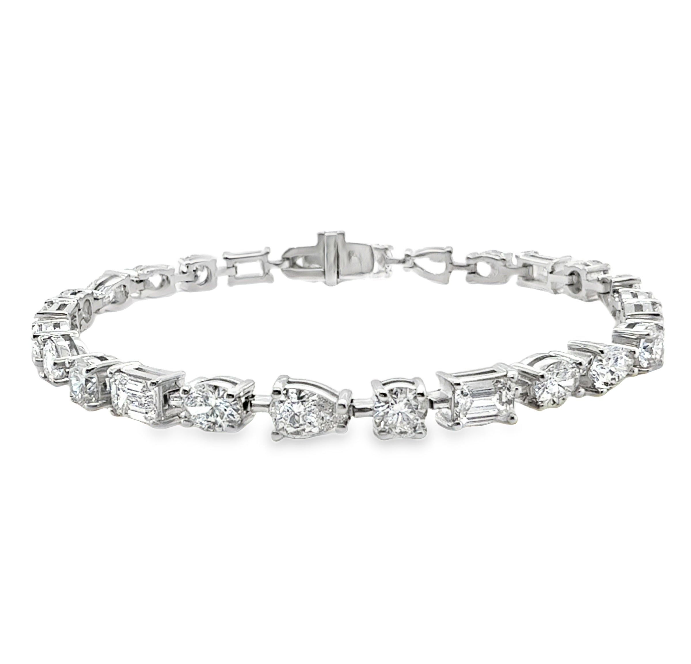 14K White Gold Tennis Bracelet with Prong Set Lab Grown Multi Shaped Diamonds(Oval,Baquette,Pear And Round) , 8.20CTTW F-VS2.
