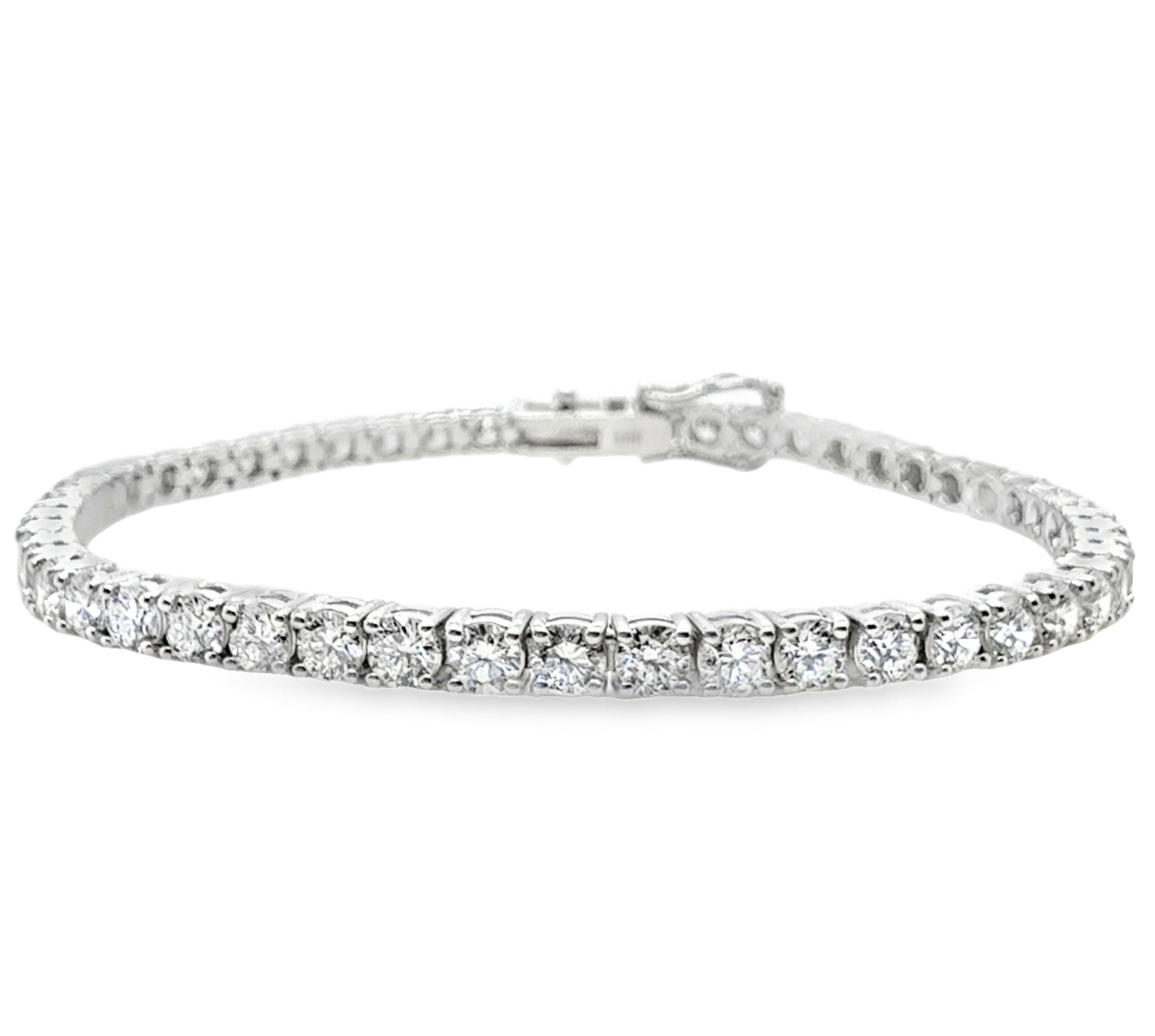 14K White Gold Tennis Bracelet with Prong Set Lab Grown Diamonds 6.03CTTW, F VS2.