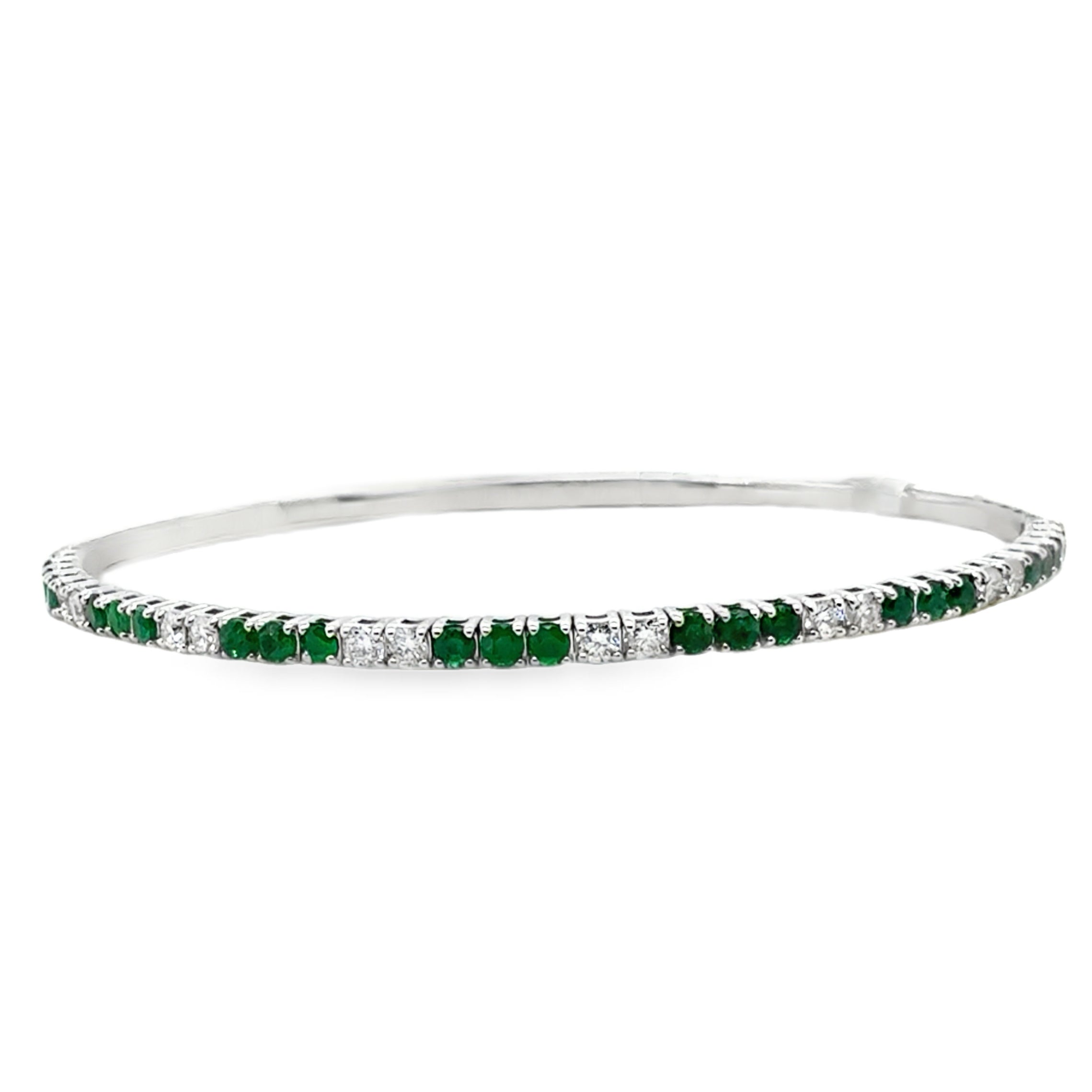 14K White Gold Flexible Hinged Bangle Bracelet with Emeralds 1.10CTTW and Diamonds D.67CTTW.