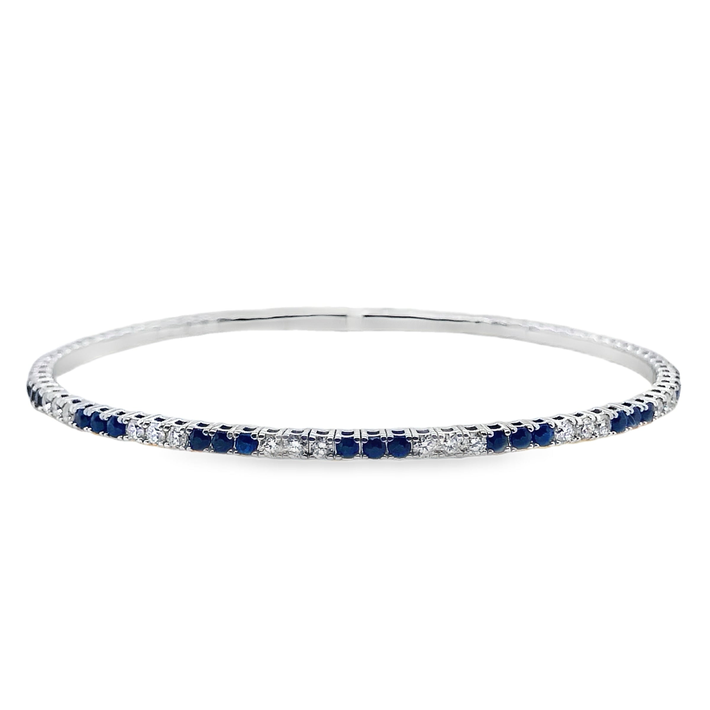 14K White Gold Flexible Hinged Bangle Bracelet with Sapphires 1.30CTTW and Diamonds 1.00CTTW.