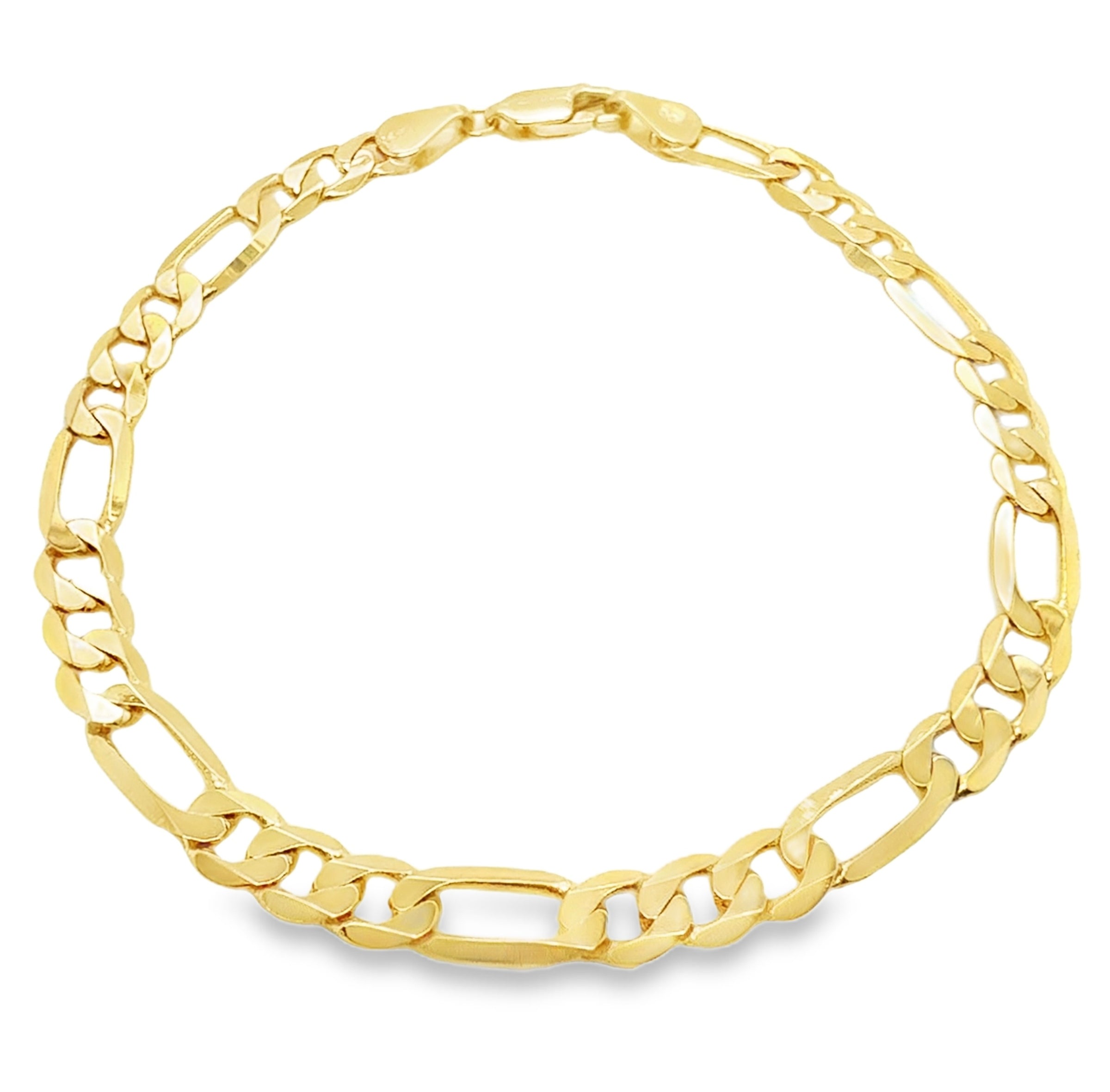 14K Yellow Gold Flat Figaro Bracelet 8", 5.25MM, 7.68Grams.
