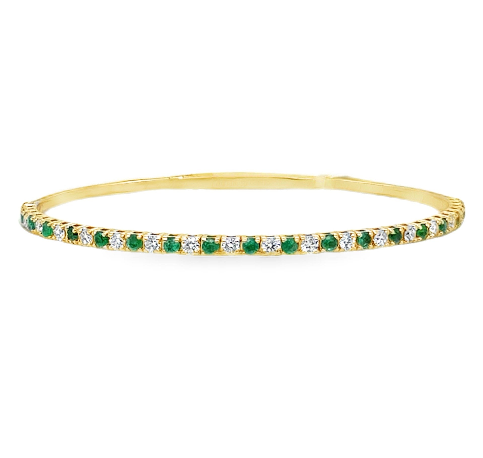 14K Yellow Gold Flexible Hinged Bangle Bracelet with Emeralds E.68CTTW and Diamonds D.76CTTW.