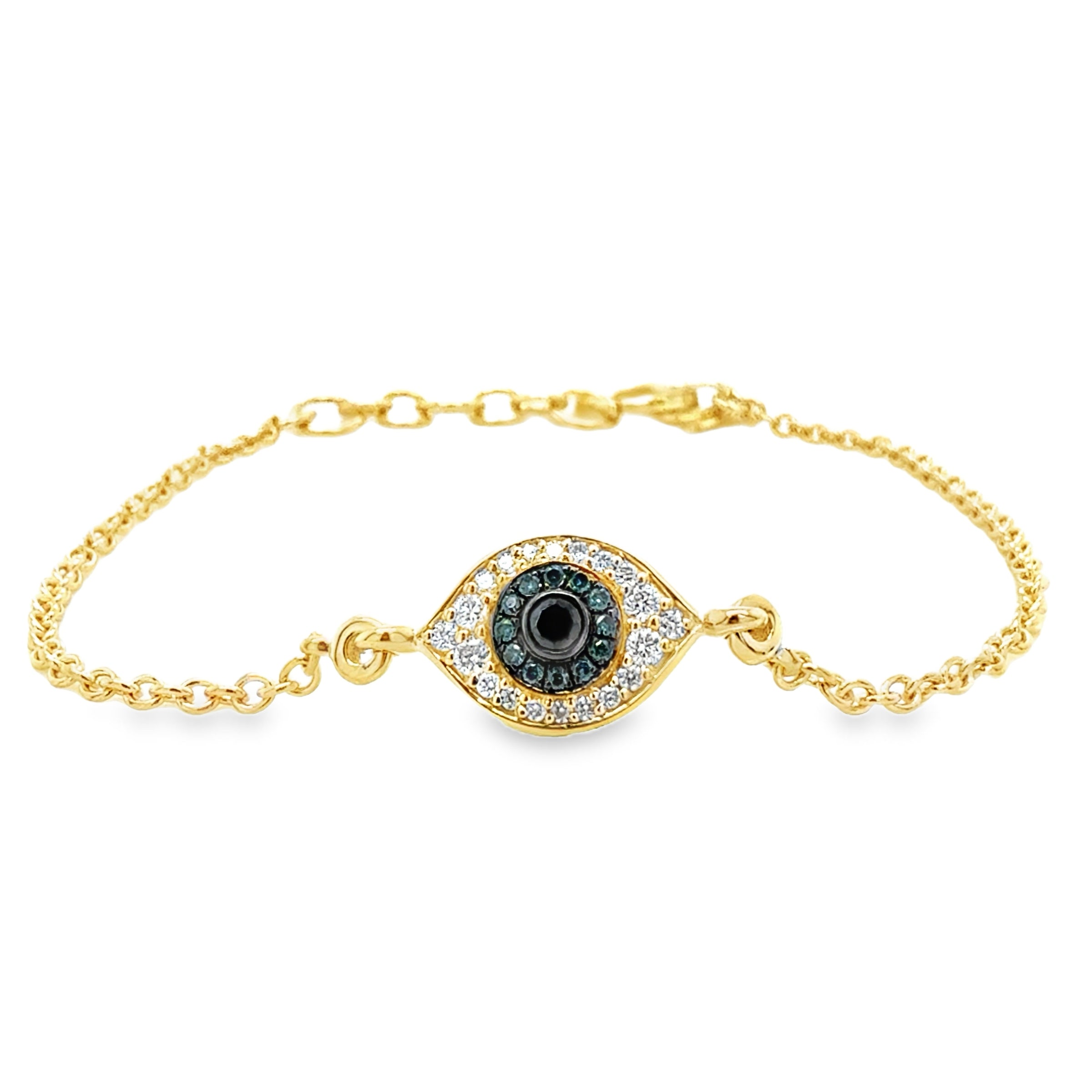 14K Yellow Gold Mini Evil Eye Bracelet with White, Blue And Black Diamonds D.24CTTW.