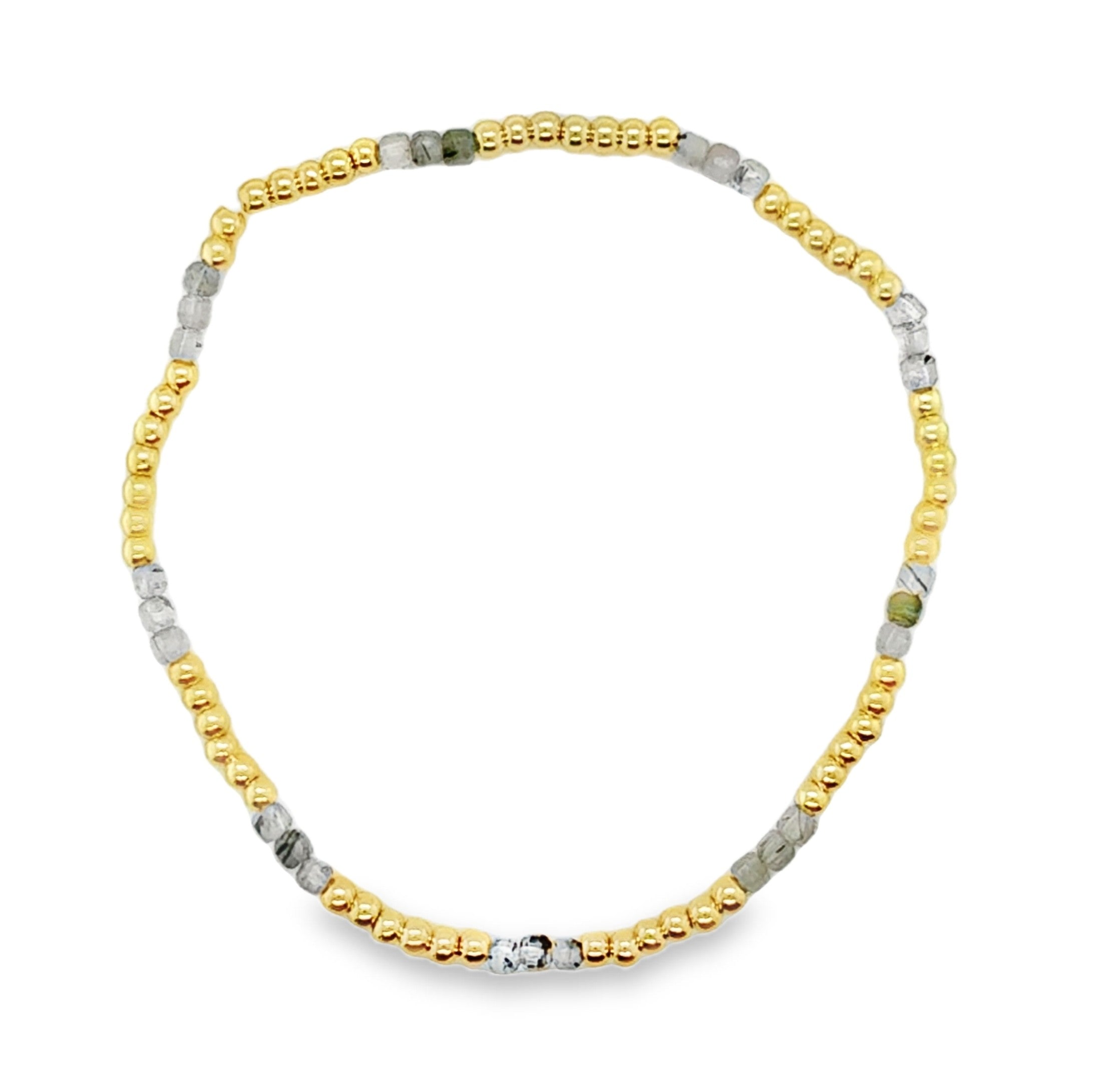 Gold Plated 3MM Bracelet with Triple Glass Bead Pattern.