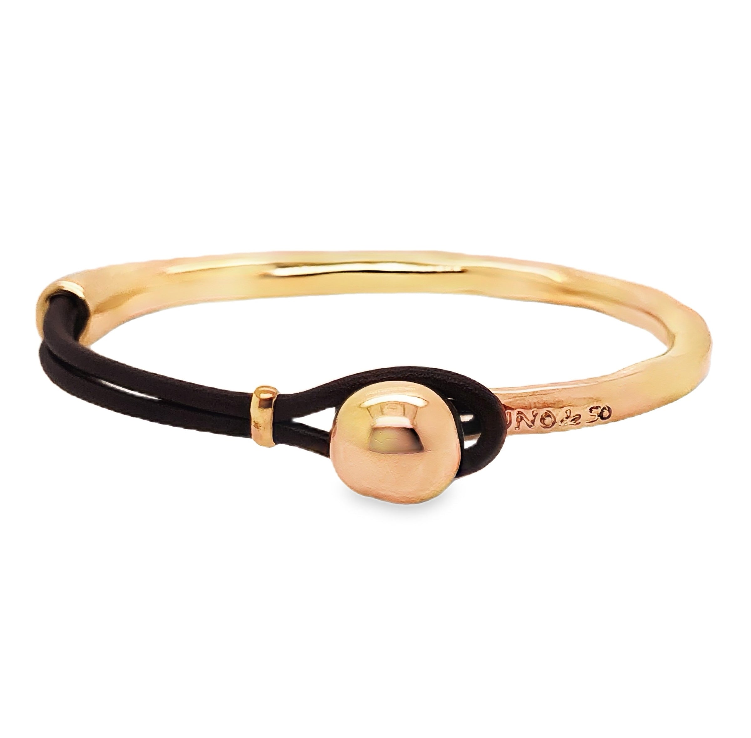Gold Plated Pewter Cuff Bracelet with Leather Cord.