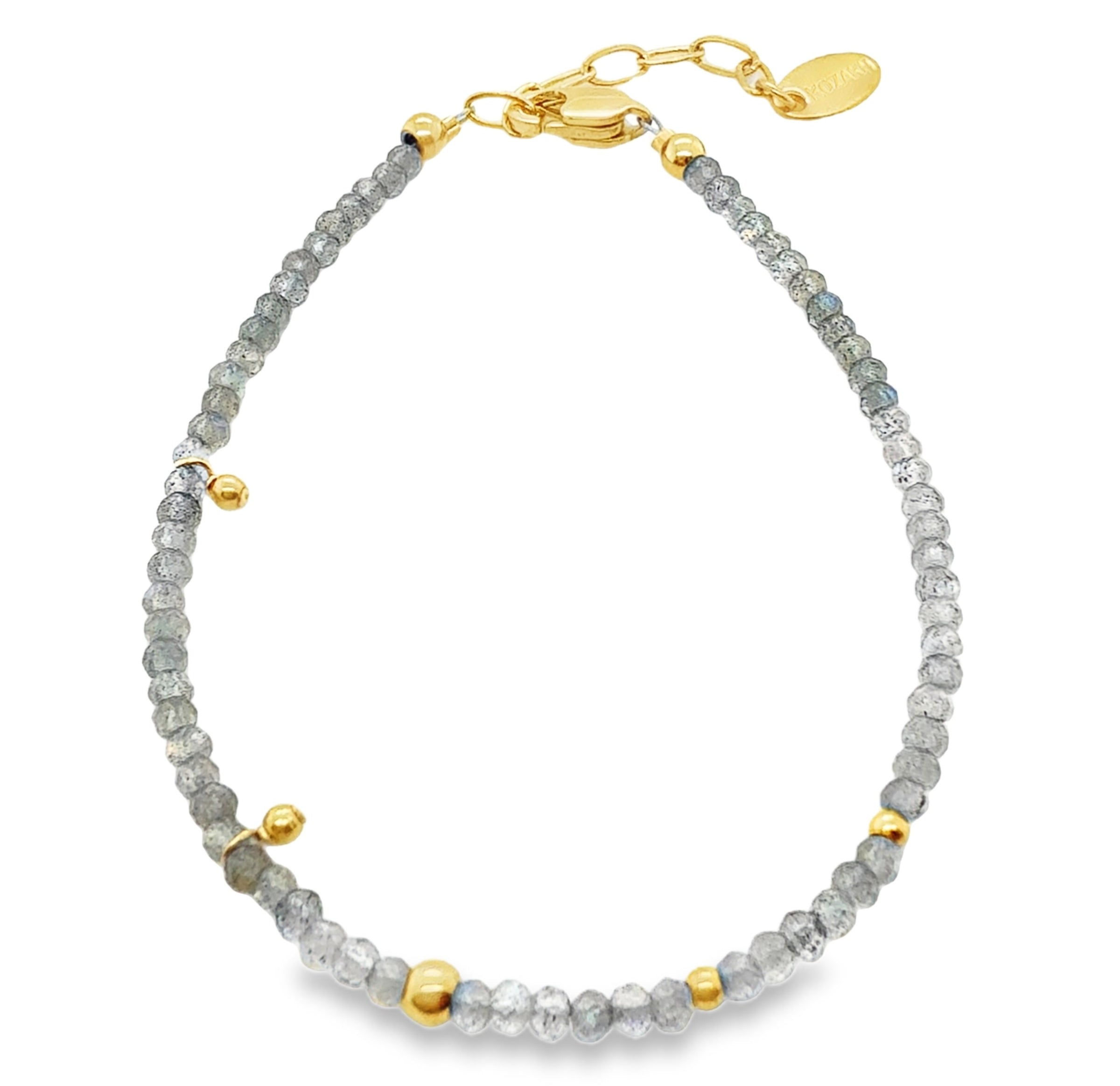 Labradorite Beaded Bracelet with Gold Plated Beads And Clasp.