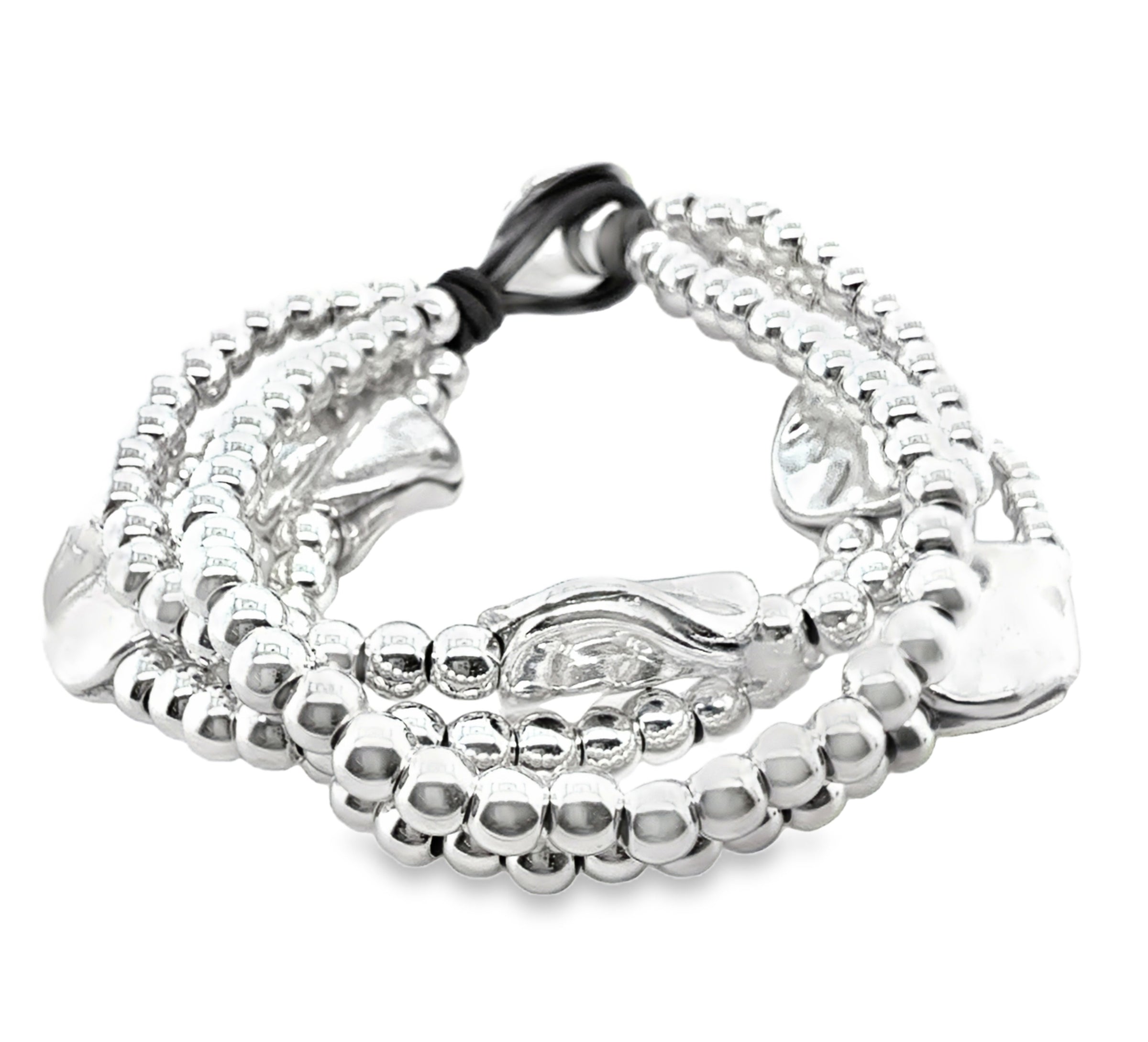 Silver Plated Pewter 4 Strand Beaded Bracelet on Leather Cord.