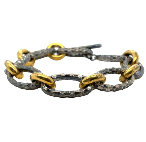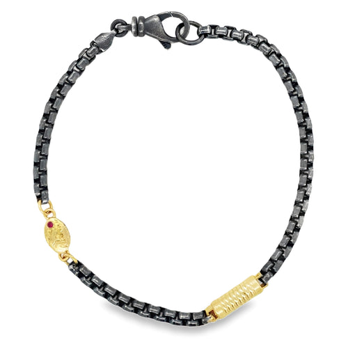 18K YELLOW GOLD AND OXIDIZED STERLING SILVER BRACELET #440-00017