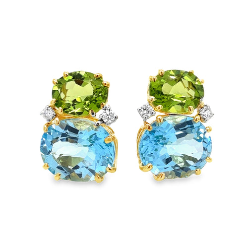 14K YELLOW GOLD PERIDOT, BLUE TOPAZ AND DIAMOND EARRINGS #210-00463