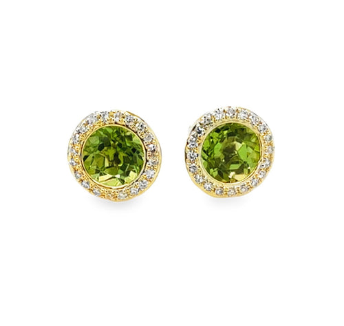 14K YELLOW GOLD PERIDOT AND DIAMOND EARRINGS #210-00461