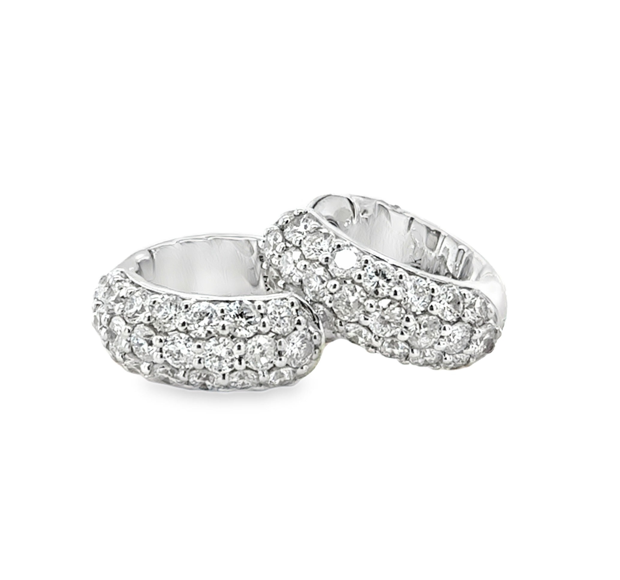 14K White Gold Round Inside and Out Huggy Earrings with Diamonds D.94CTTW, and Lock Clasp.