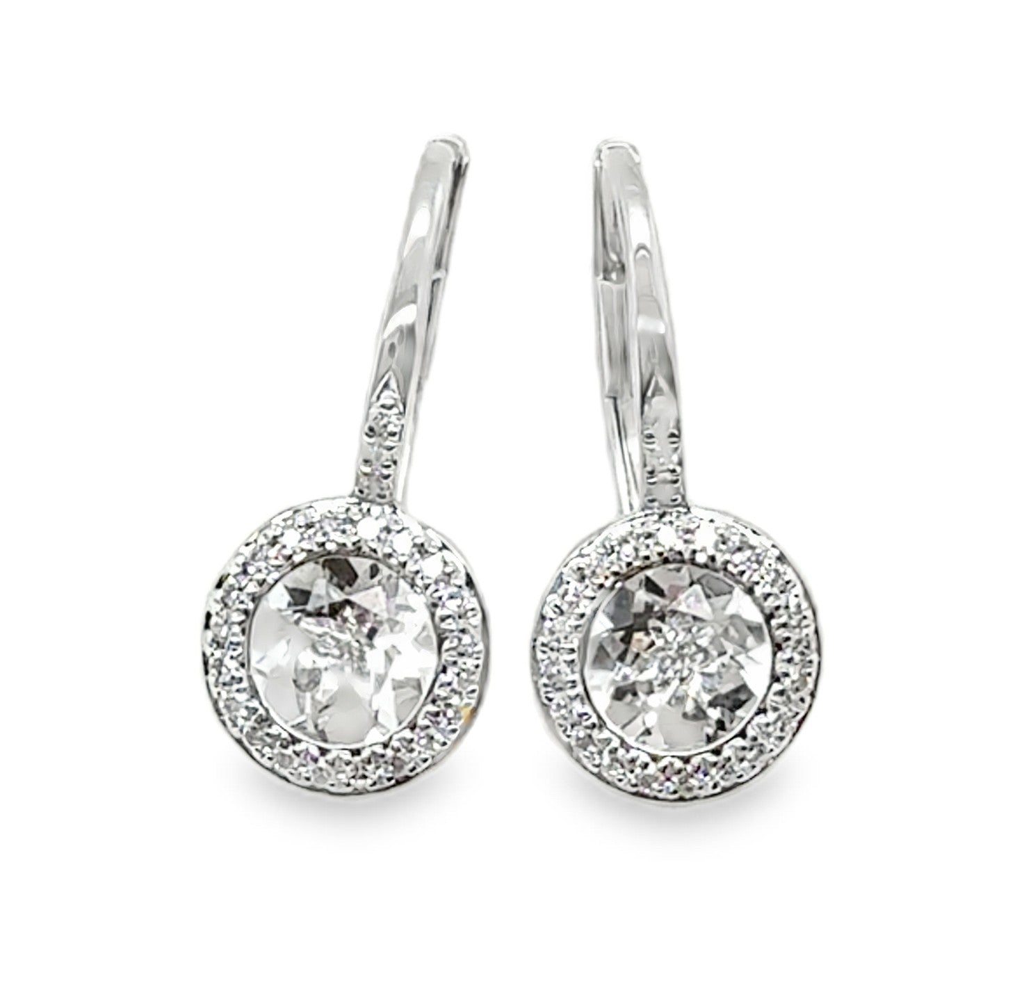 14K White Gold Leverback Earrings with White Topaz 1.40CTTW and Diamonds D.13CTTW.
