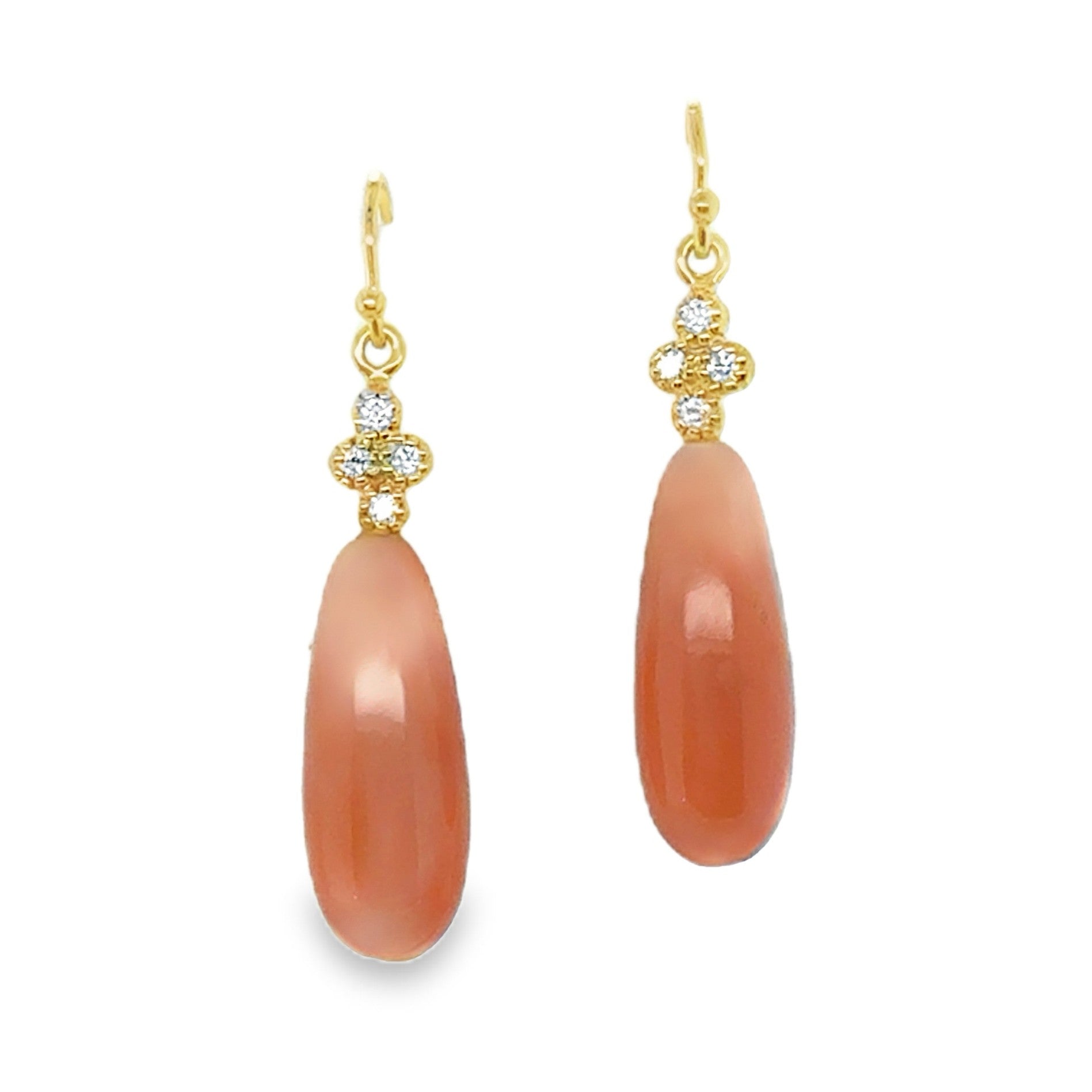 14K Yellow Gold Coral Drop Earrings with Diamonds D.12CTTW..