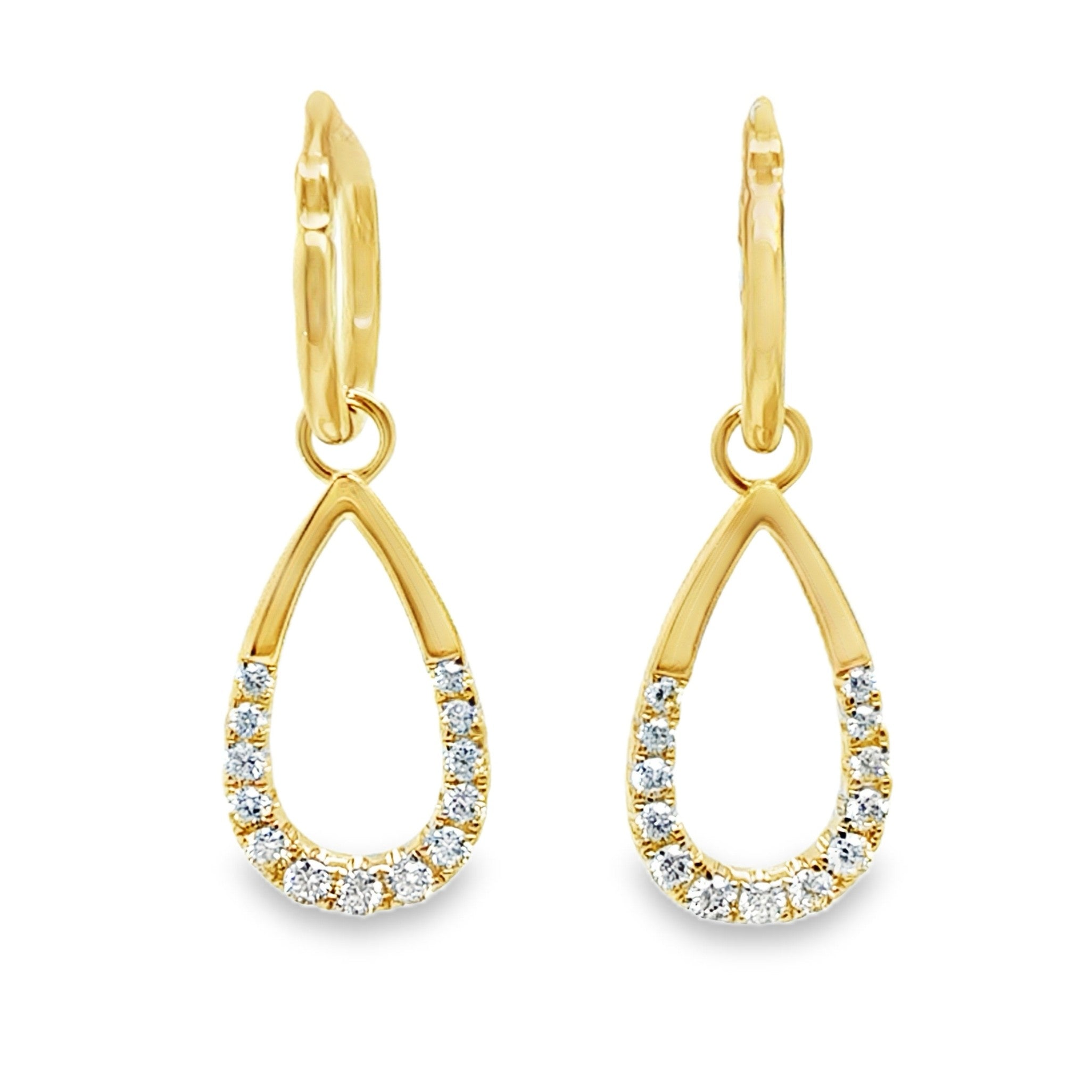 14K Yellow Gold Hoop Earrings and Teardrop Dangle, Set with Diamonds D.50CTTW.