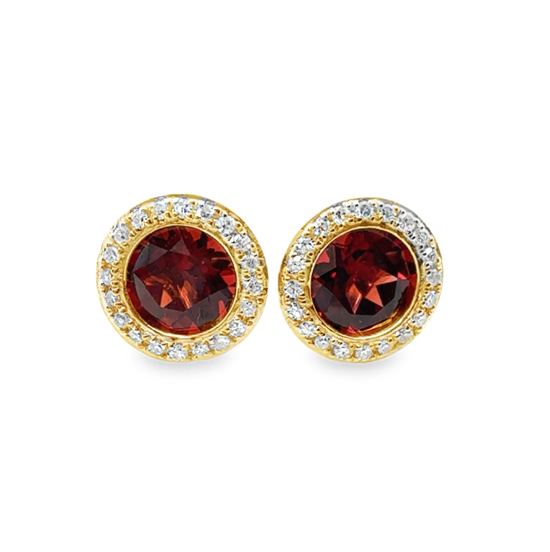 14K YELLOW GOLD GARNET AND DIAMOND EARRINGS #210-00500