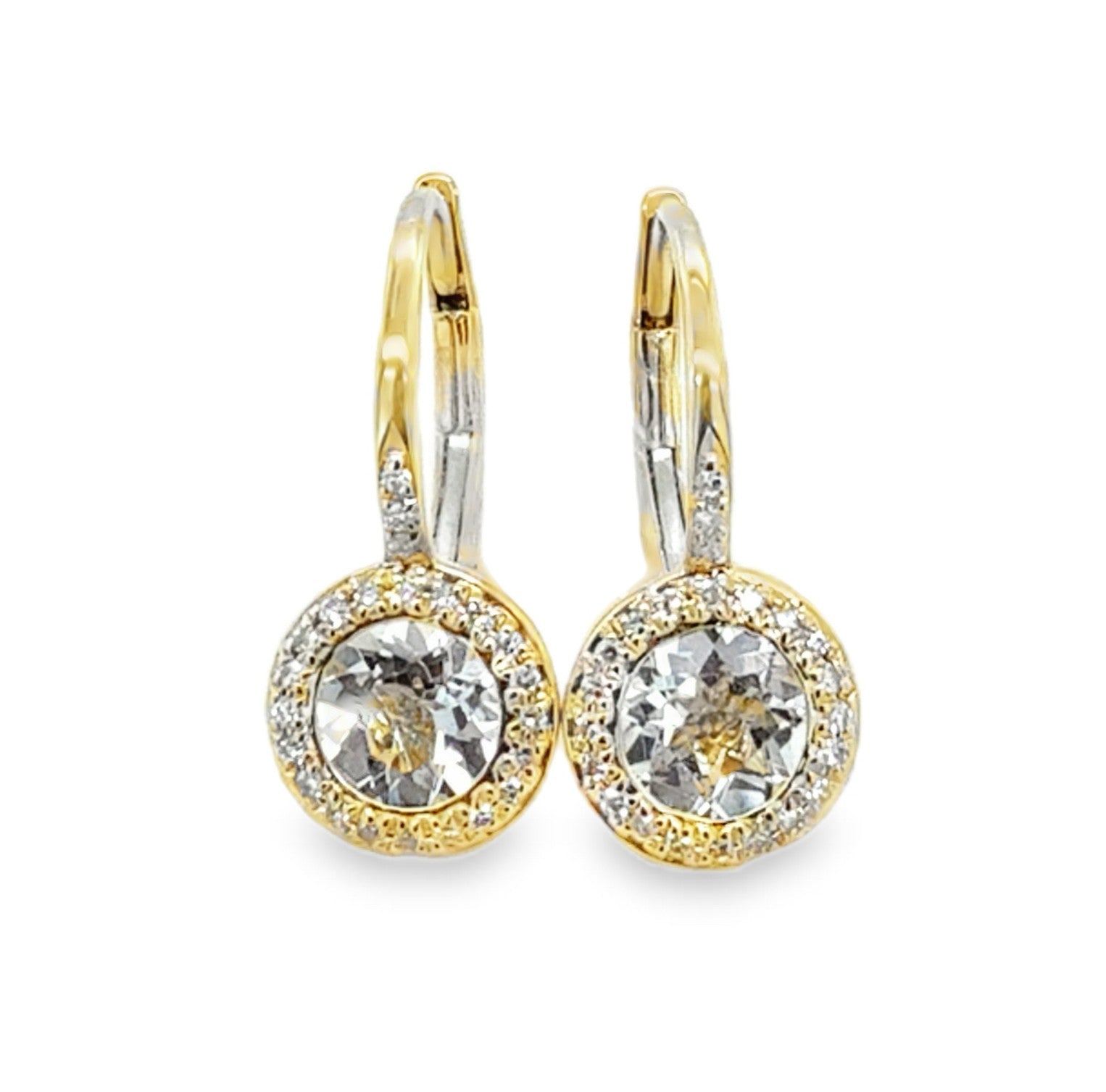 14K Yellow Gold Leverbacks Earrings with White Topaz 1.46CTTW and Diamonds D.15CTTW.