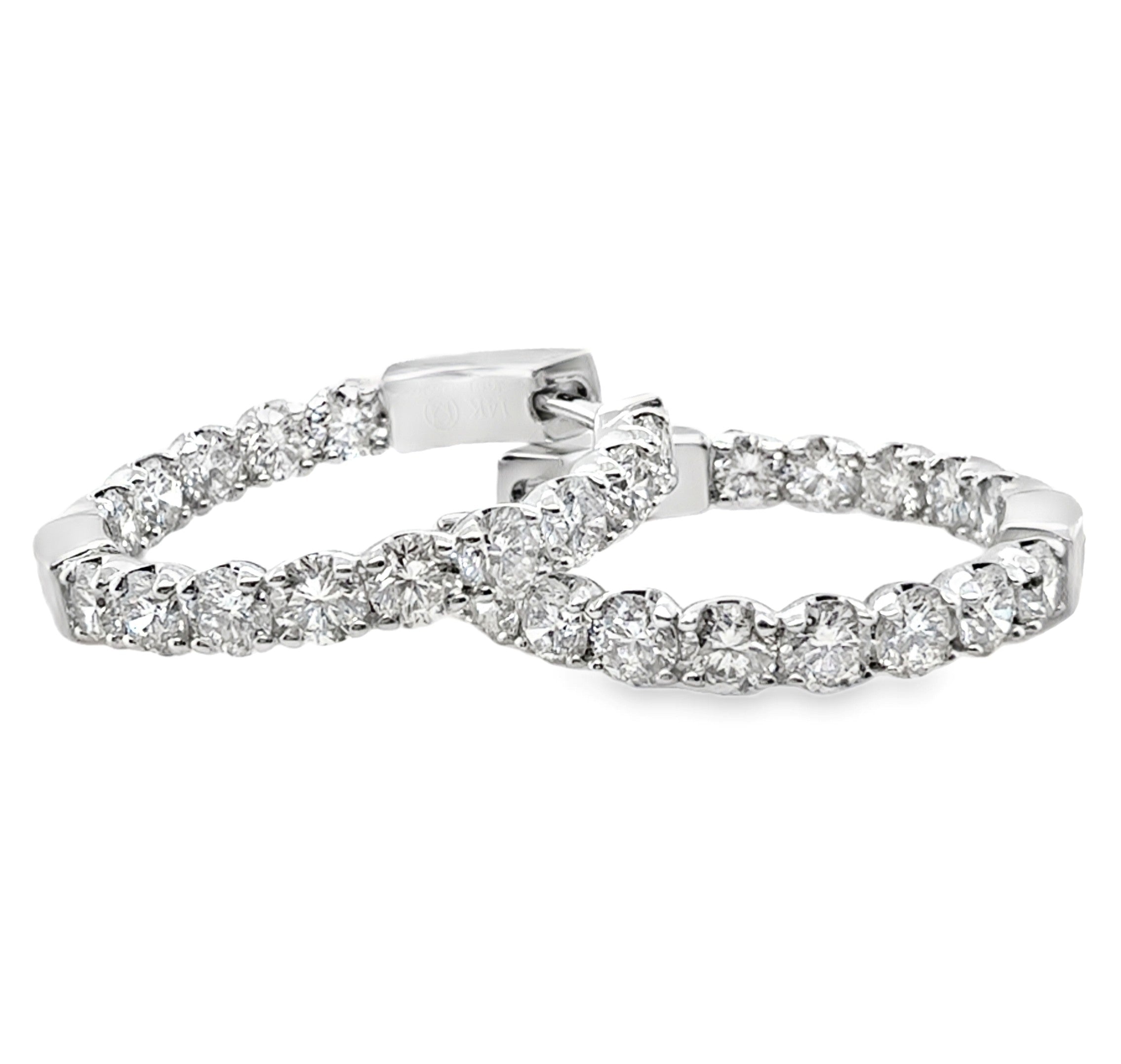 14K White Gold Round InsideOut Huggy Earrings with Diamonds 2.50CTTW, with Lock.
