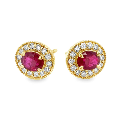 14K YELLOW GOLD RUBY AND DIAMOND EARRINGS #210-00449