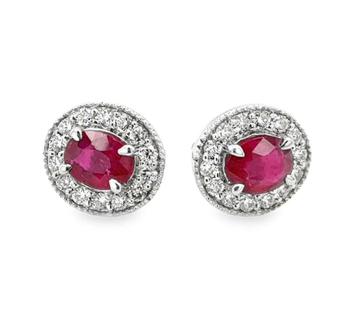 14K WHITE GOLD RUBY AND DIAMOND EARRINGS #210-00447