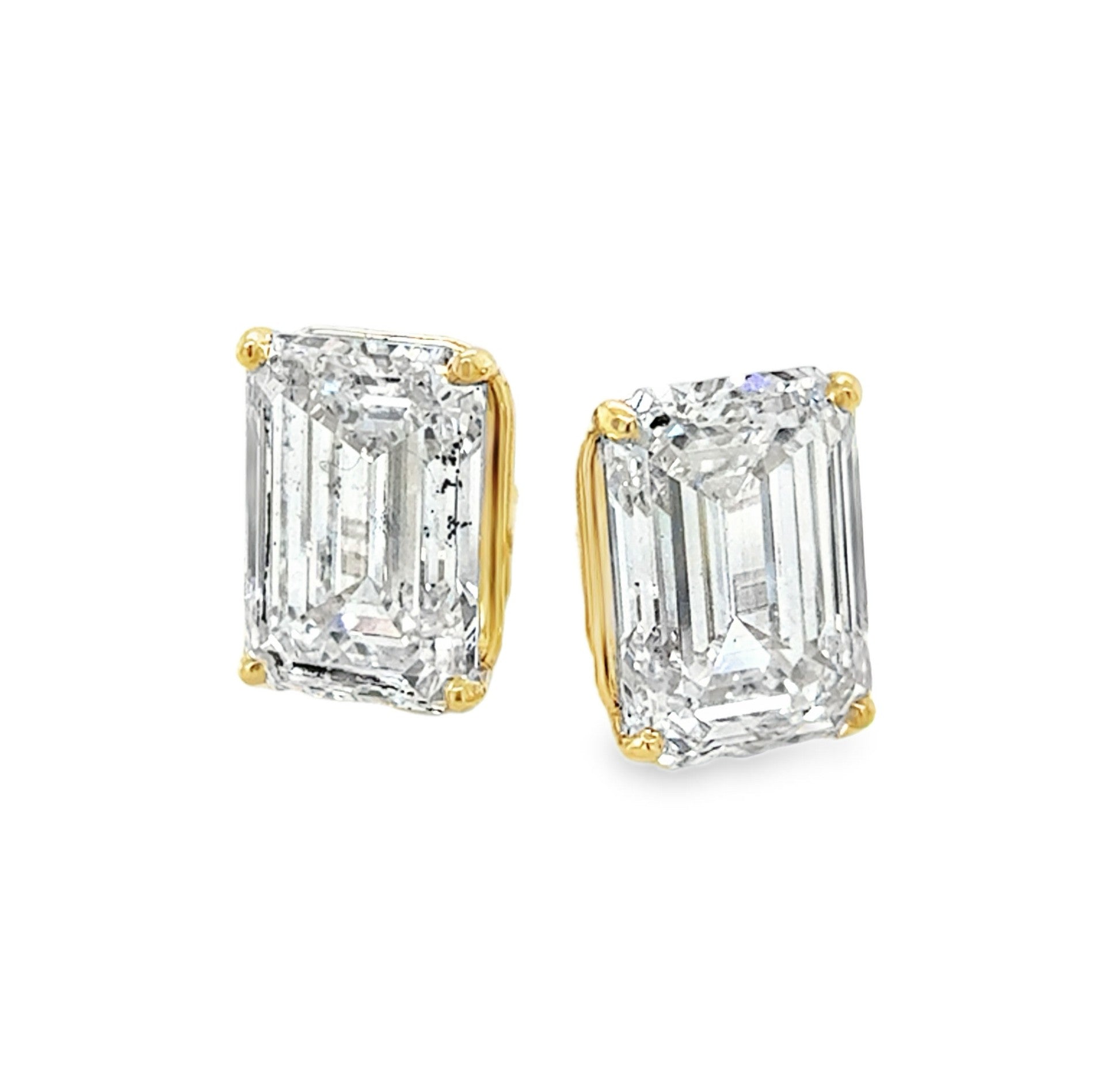 14K Yellow Gold Stud Earrings with Emerald Cut Lab Grown Diamonds, 5.99CTTW, F-VS.