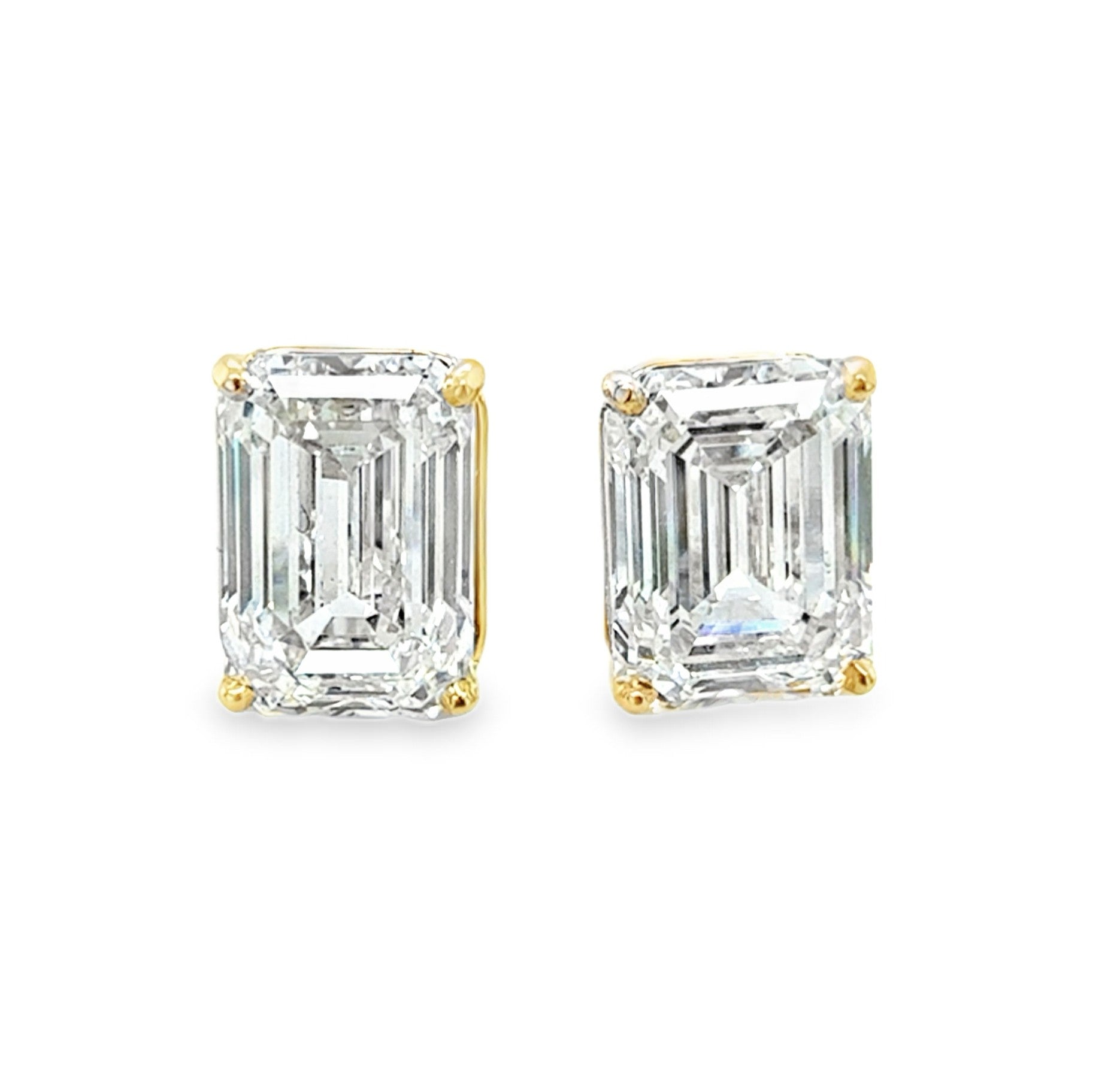14K Yellow Gold Basket Set Stud Earrings with Emerald Cut Lab Grown Diamonds 5.62CTTW F-G VS.