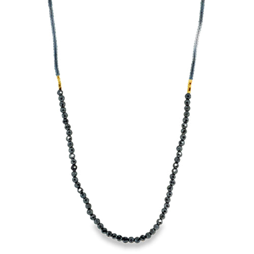 GREY, GOLD VERMEIL AND BLACK SPINEL BEADED NECKLACE #801-00197