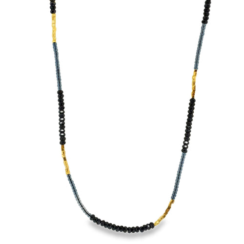 GREY, GOLD VERMEIL AND BLACK SPINEL BEADED NECKLACE #801-00193