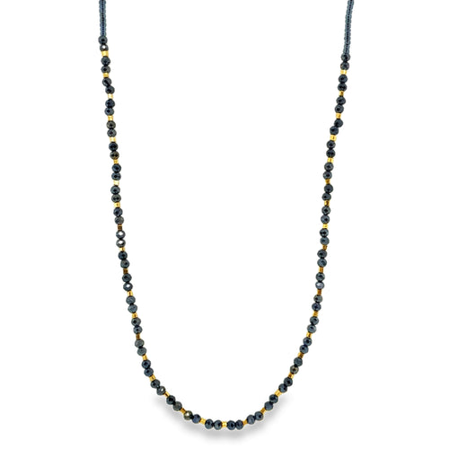 GREY, GOLD VERMEIL AND BLACK SPINEL BEADED NECKLACE #801-00194
