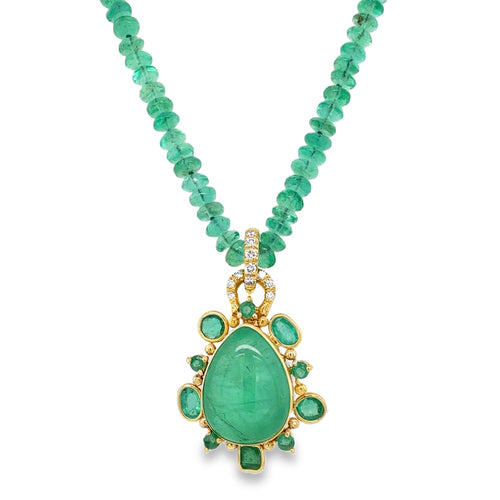 18K YELLOW GOLD EMERALD BEADED NECKLACE #230-00286
