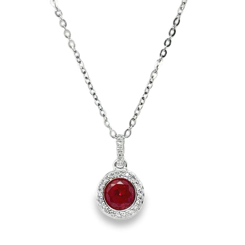 14K WHITE GOLD RED CORUNDUM AND DIAMOND NECKLACE #230-00296