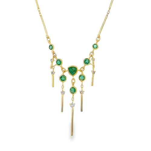 14K YELLOW GOLD EMERALD AND DIAMOND NECKLACE #235-00325