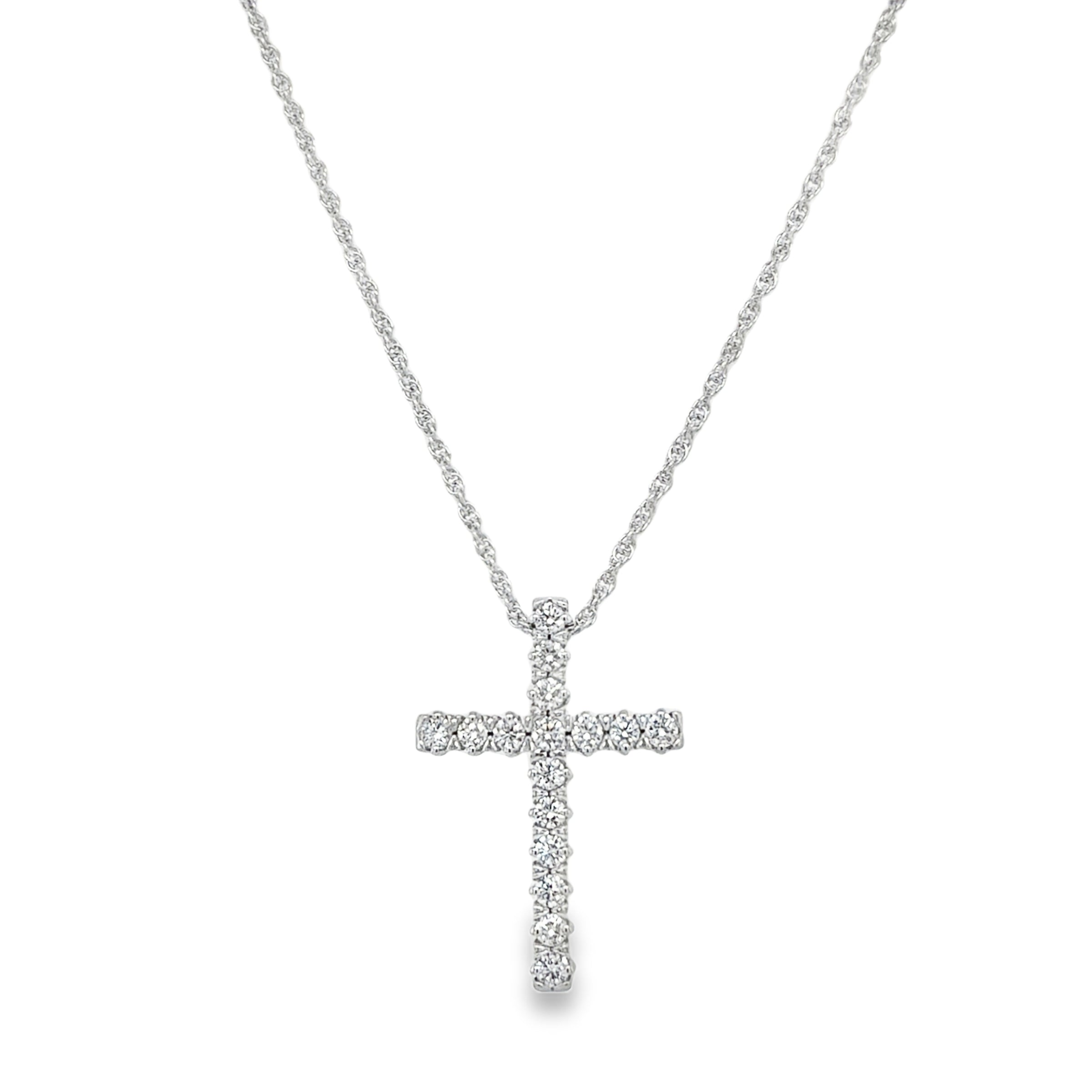 14K White Gold Cross Necklace with Diamonds D.50CTTW Aon a Cable Chain.