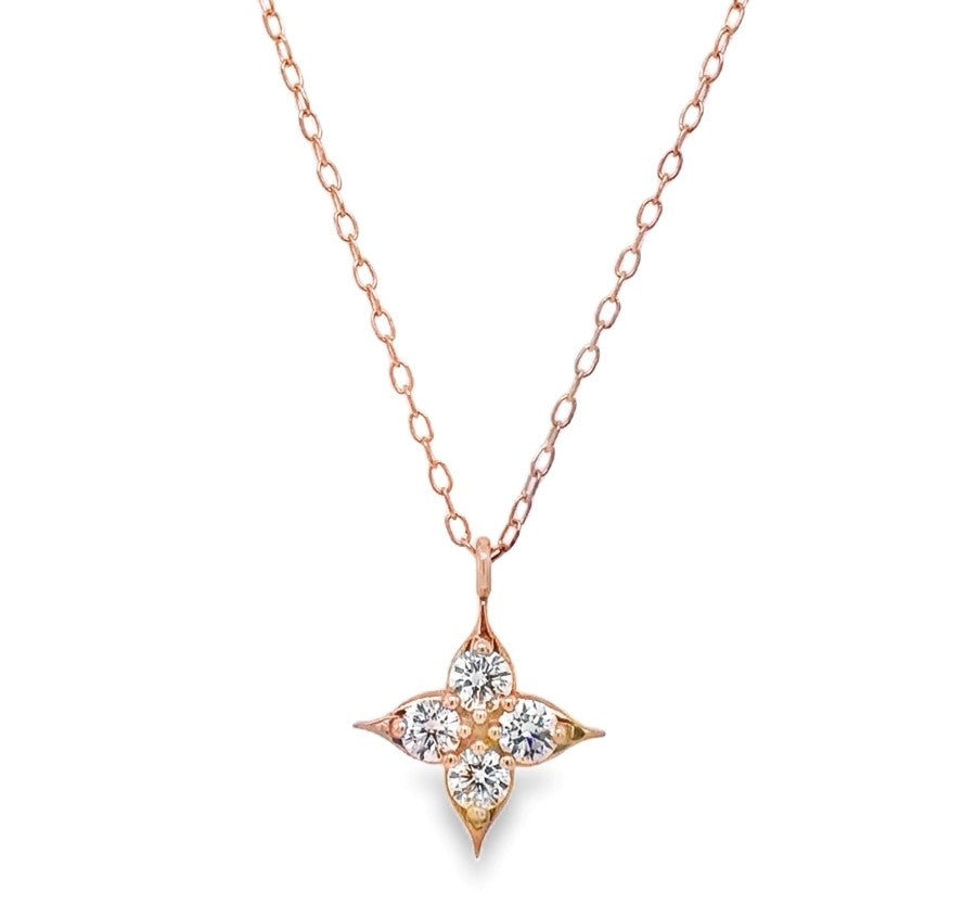 14K Rose Gold Small Compass Pendant with Lab Grown Diamonds D.43CTTW and on a Cable Chain, 18" with Lobster Clasp.