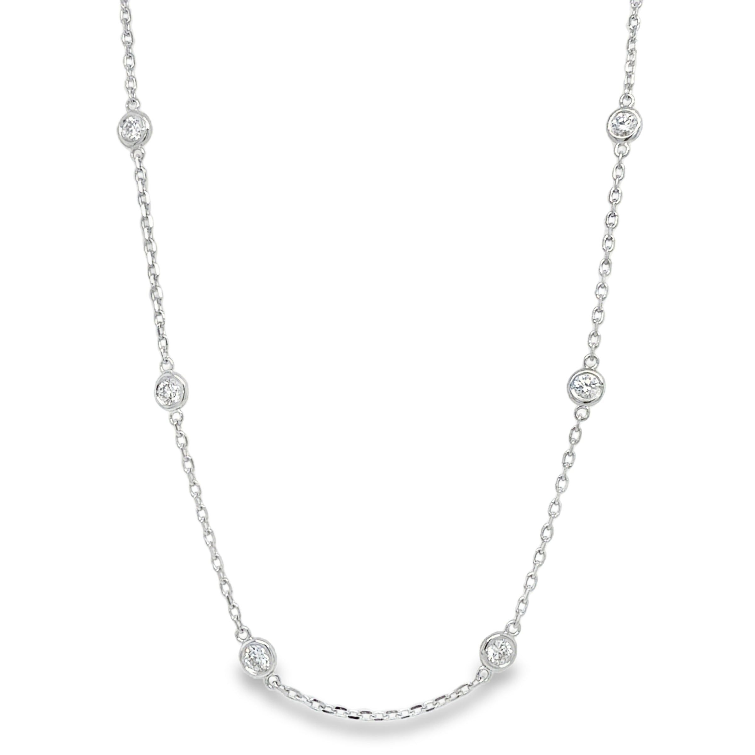 14K White Gold Necklace with Bezel Set Diamonds 1.02CTTW, Length 18".