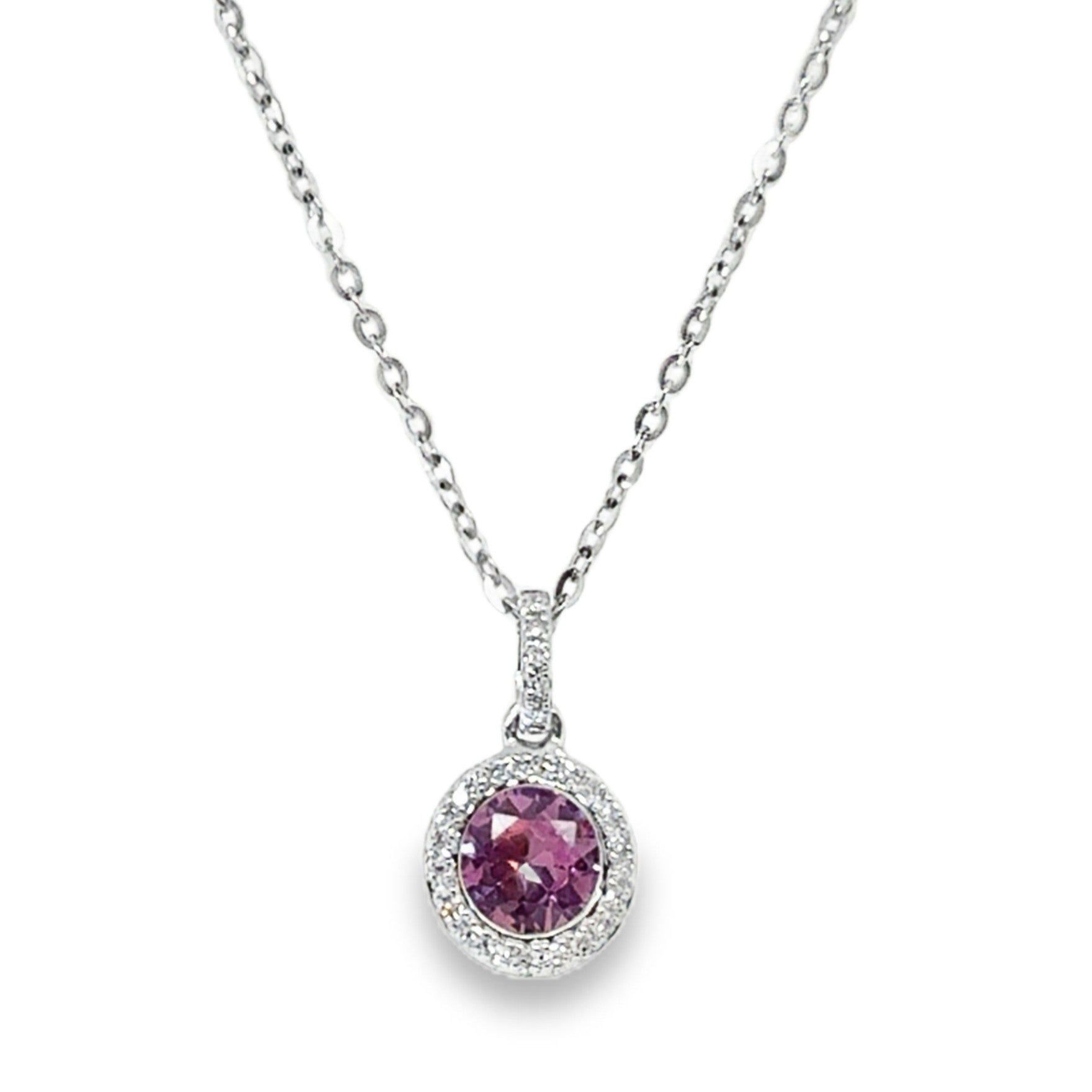 14K White Gold Necklace with Pink Corundum .93CT and Diamonds D.07CTTW, 18".