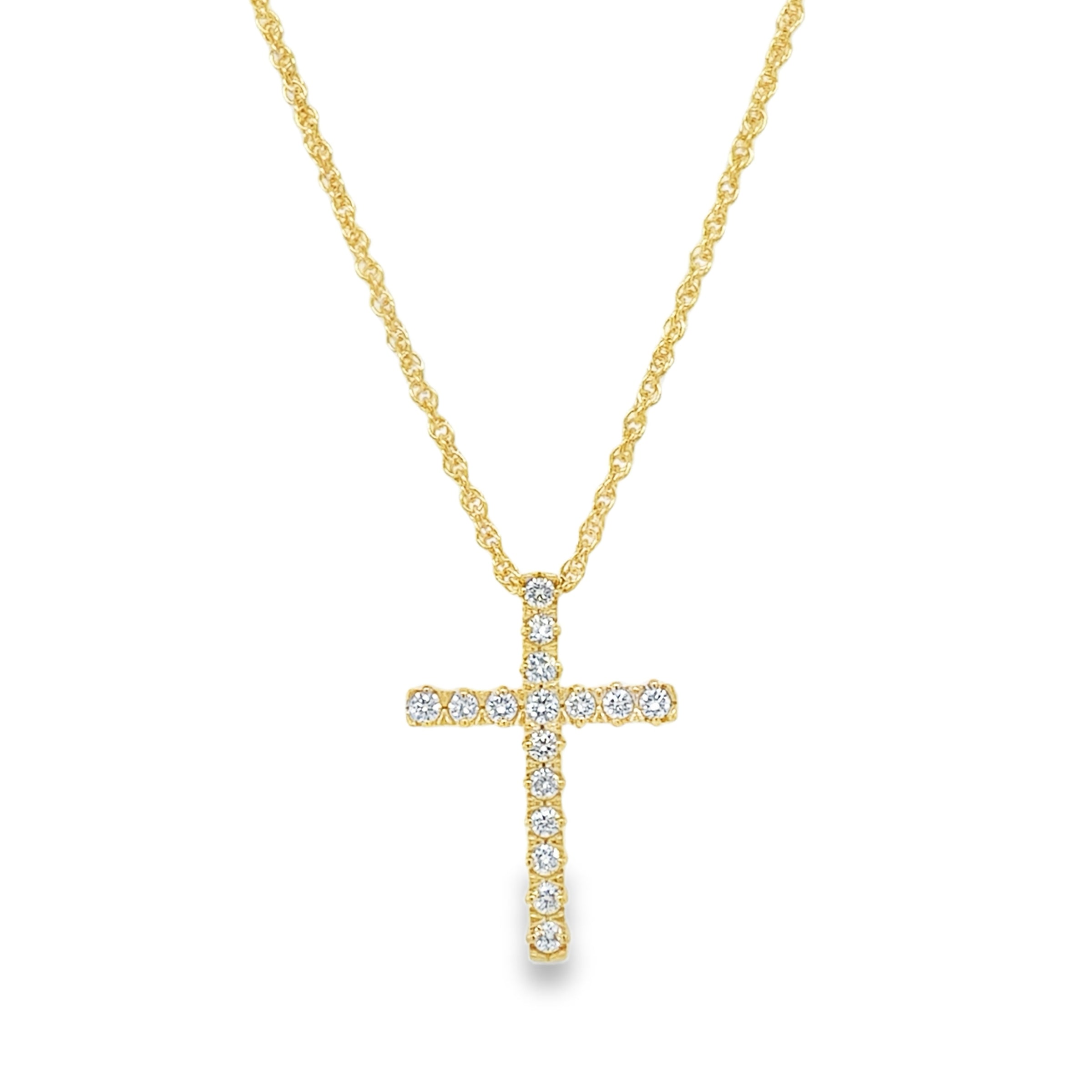 14K Yellow Gold Cross Necklace with Diamonds D.25CTTW on a Cable Chain, Length 18".