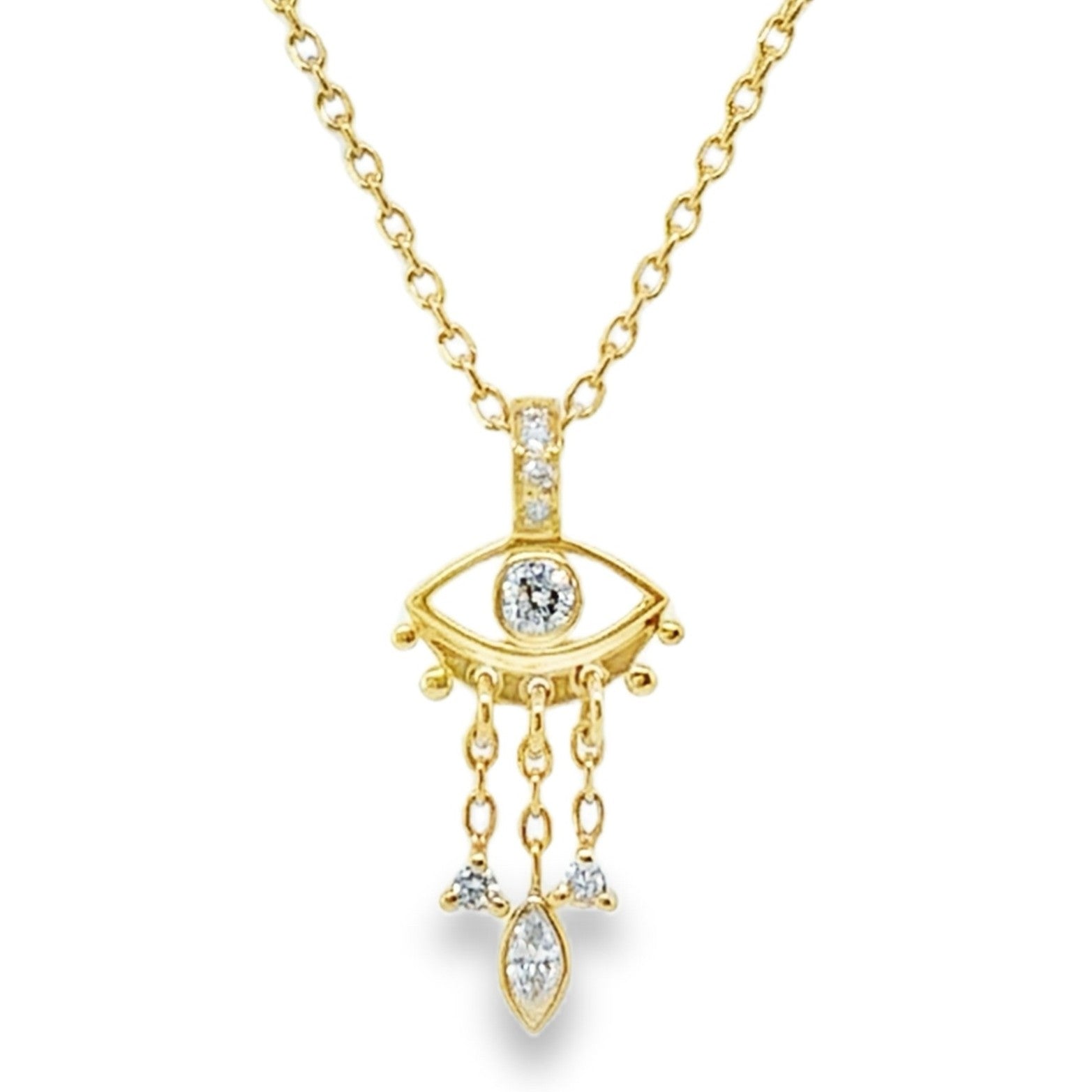 14K Yellow Gold Necklace with Eye Charm and Diamonds.