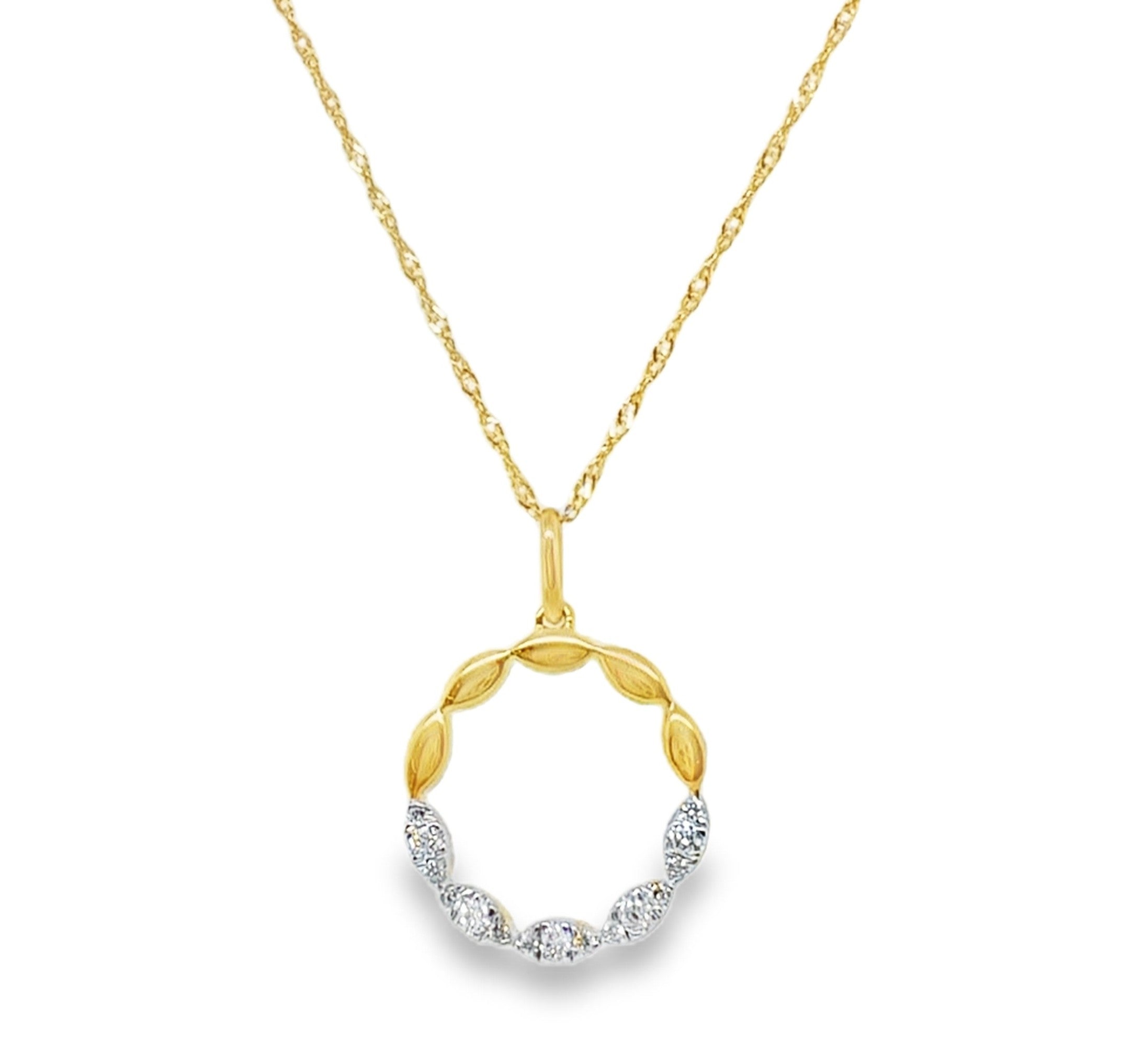 14K Yellow Gold Circle Necklace with Diamonds D.11CTTW on a Twisted Rope Chain Length : 18".