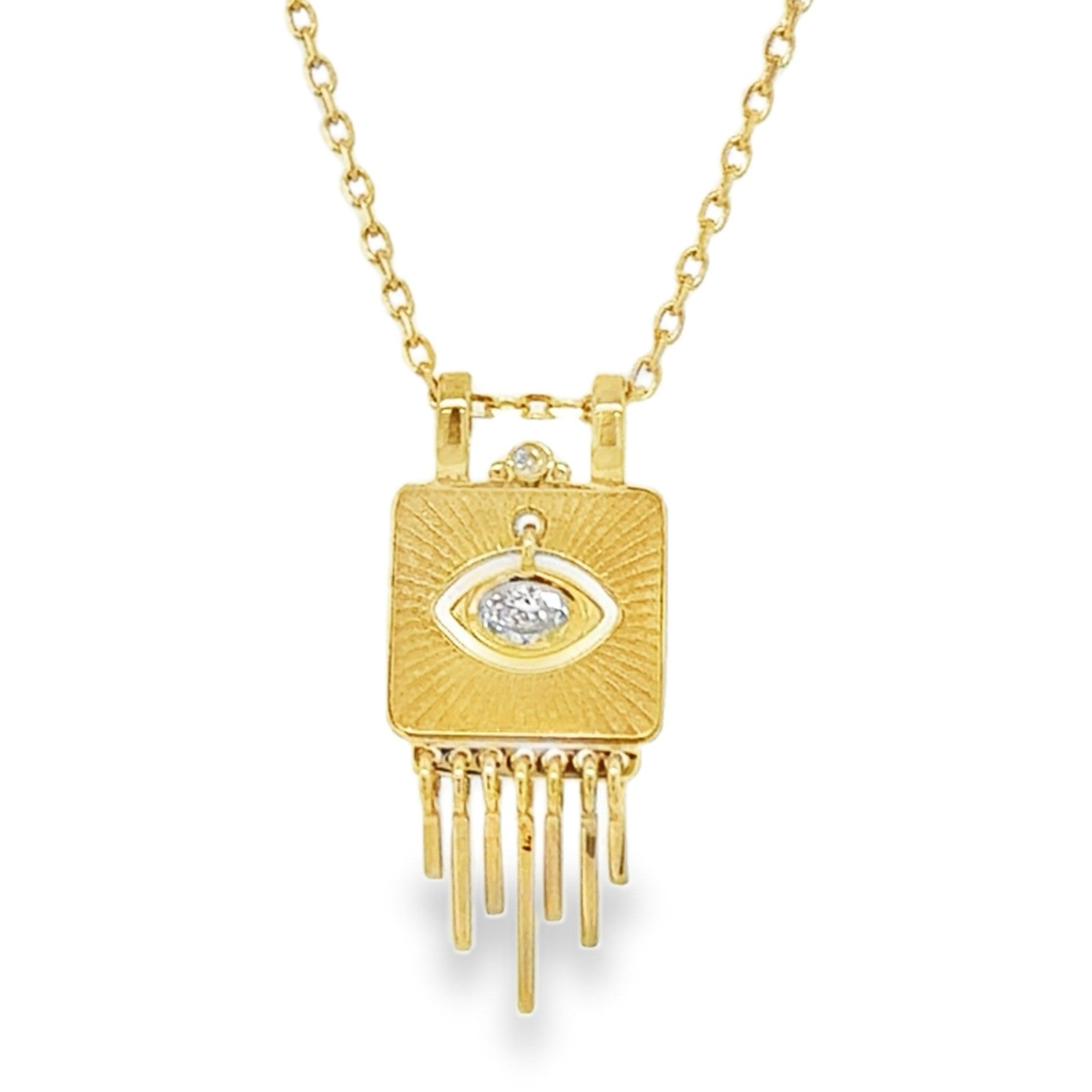 14K Yellow Gold Oval Plate Necklace with Diamonds And Fringe.