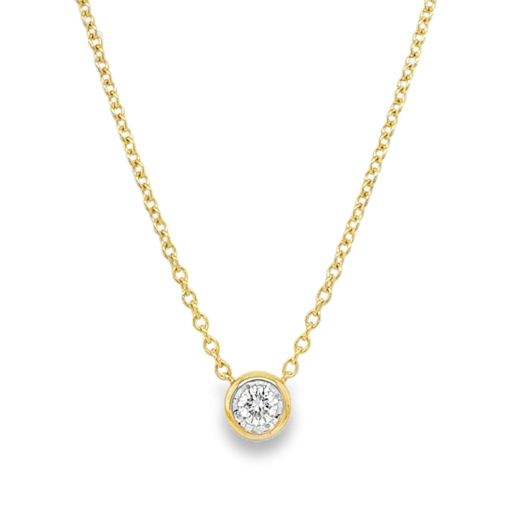 14K Yellow Gold Necklace with Bezel Set Diamond D.15CT on a Cable Chain, 18".