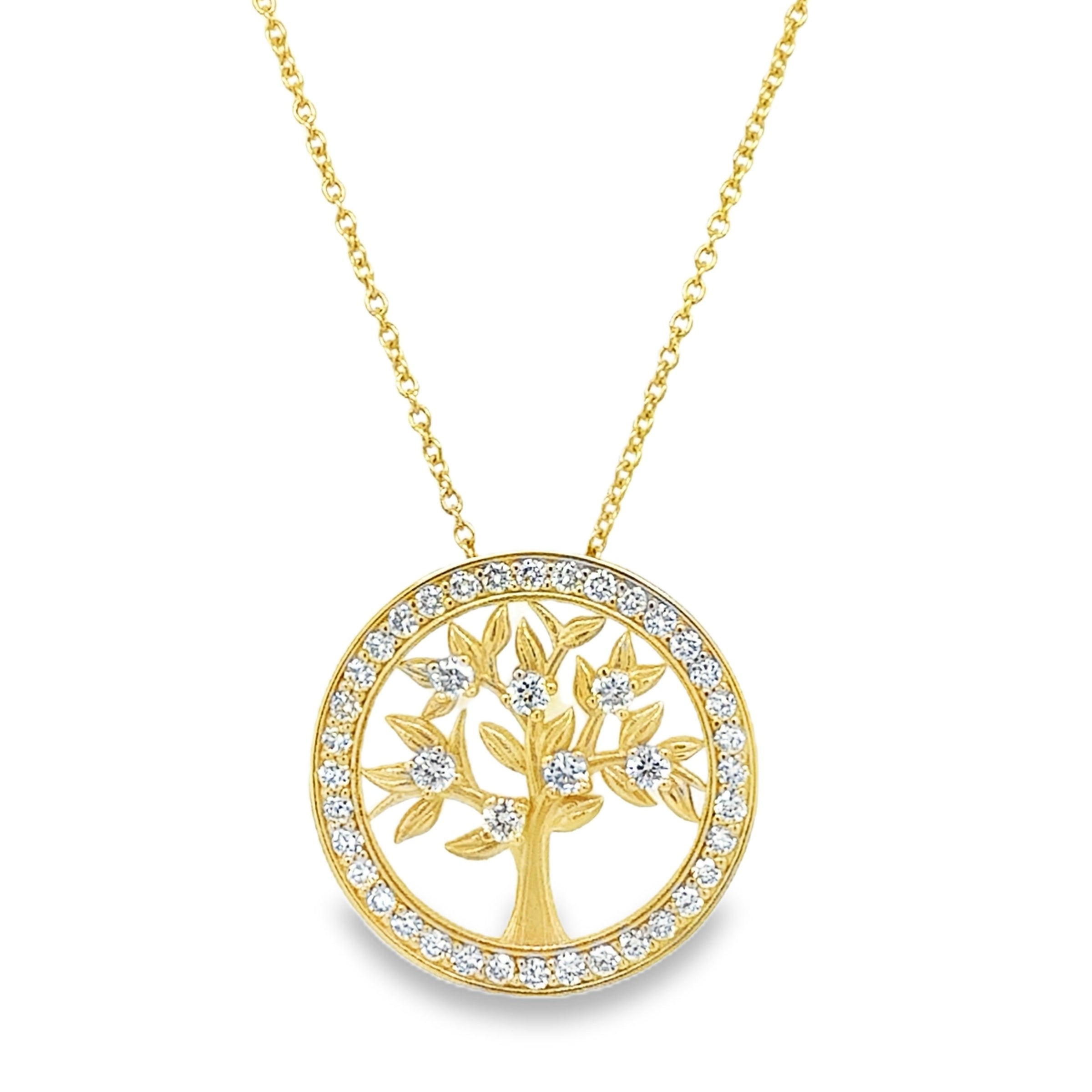 14K Yellow Gold Family Tree Necklace with Lab Grown Diamonds D.79CTTW on a 14K Yellow Gold 18" Cable Chain.