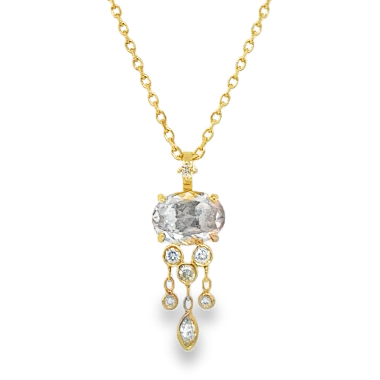 14K Yellow Gold Necklace with Oval Tourmaline and Diamonds in a Jellyfish Design.