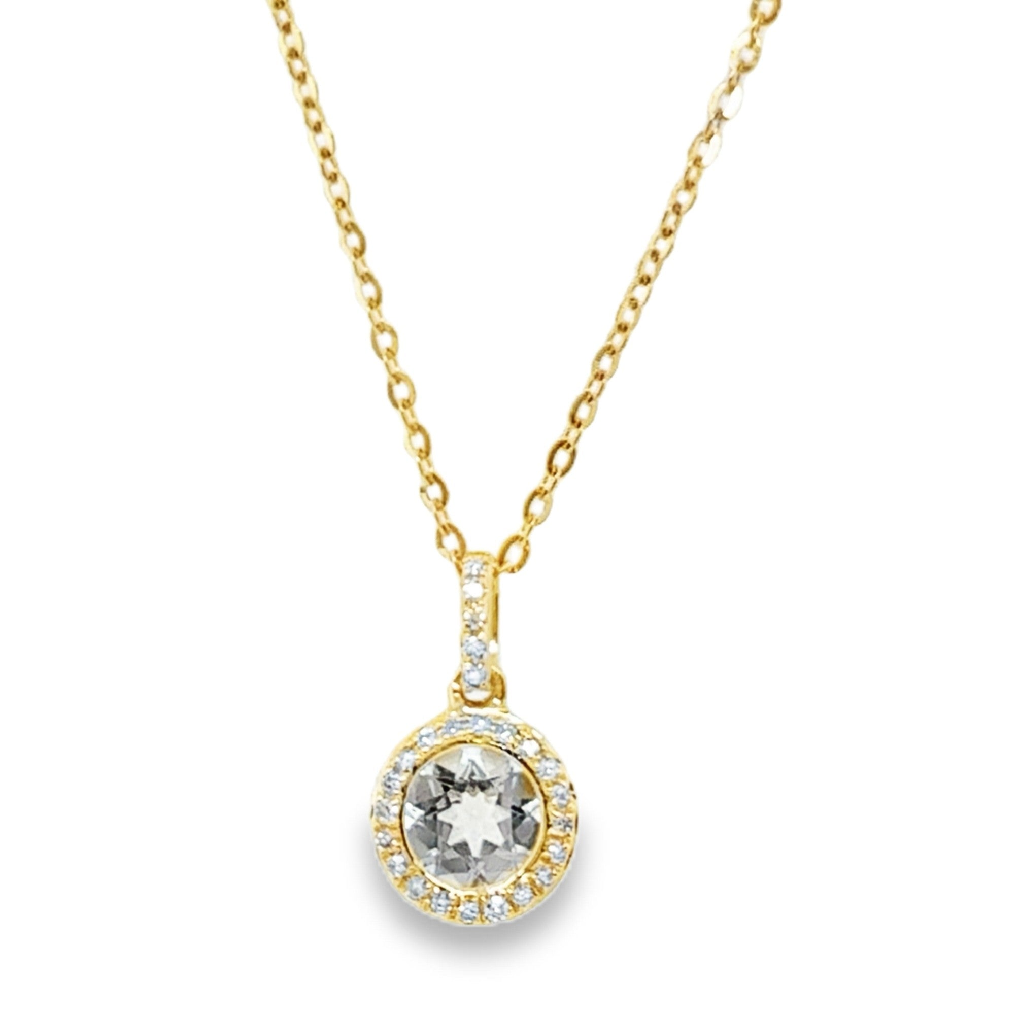 14K YELLOW GOLD WHITE TOPAZ ANS DIAMOND NECKLACE #230-00298