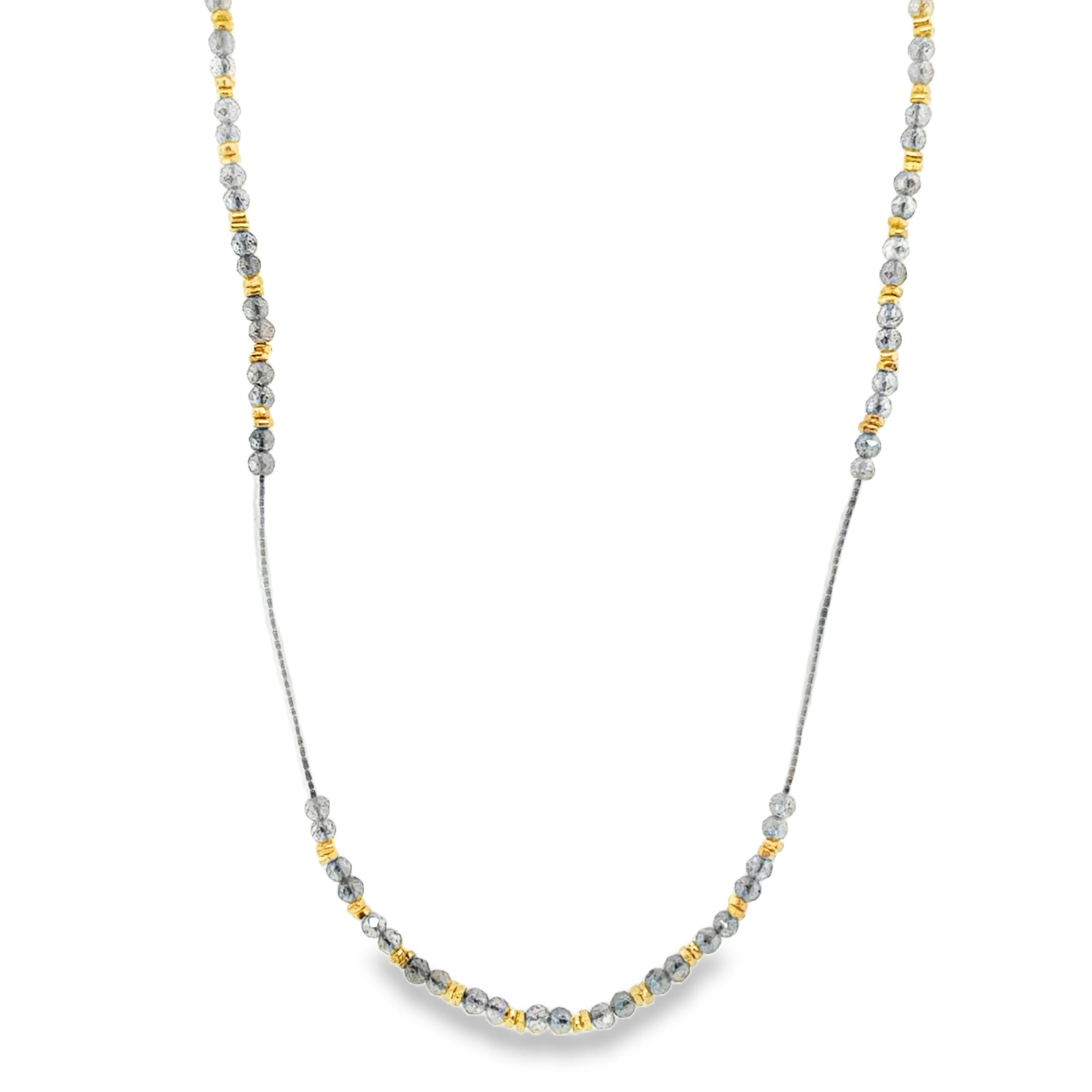 CLEAR, MYSTIC LABRADORITE AND GOLD VERMEIL BEADED NECKLACE #801-00189